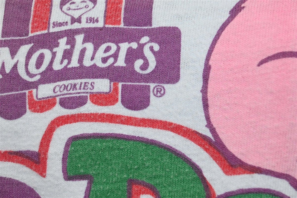 This awesome shirt promotes Mother's Cookies, and it specifically celebrates their Zoo Pals Animal Cookies. Mother's was first started back in 1914, when a man named Noah Wheatley opened a small bakery in Oakland, California. Wheatley's one man operation began on May 9th 1914, which was the same day that President Woodrow Wilson declared the first national Mother's Day.