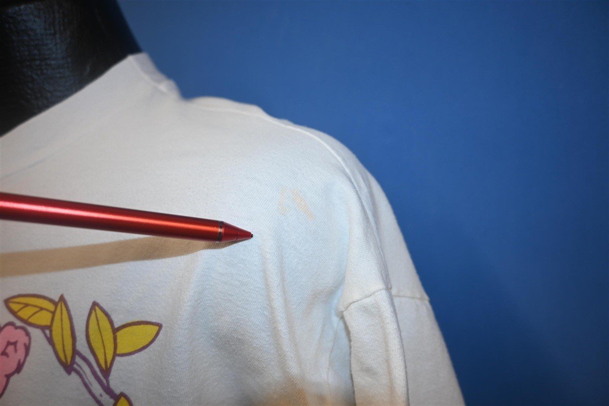 Fits like a modern unisex adult XXL or 2XL. There is a small hole in the right sleeve and a spot on the left shoulder when wearing, see pics.