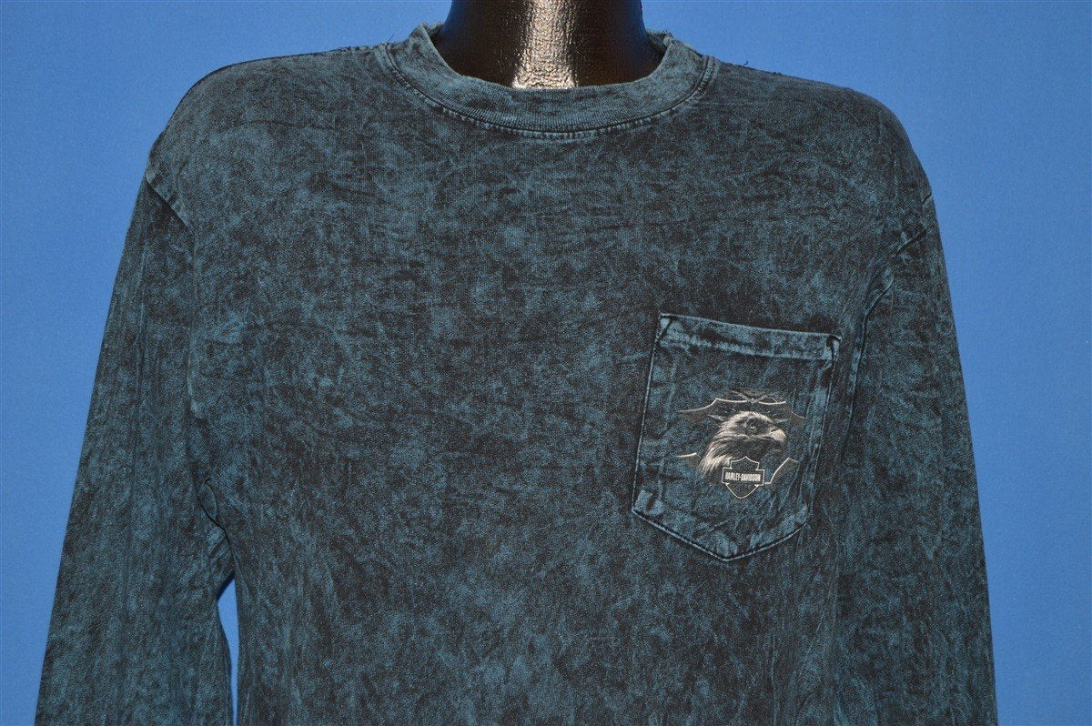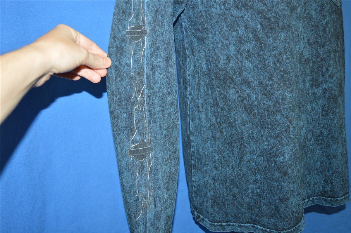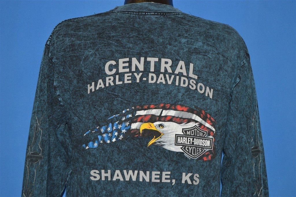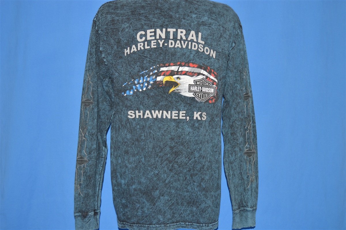 These sweet shirt has an awesome stone-washed design and it promotes the Central Harley-Davidson dealership that used to operate out of Shawnee, Kansas. Harley-Davidson is one of only two American motorcycle manufacturers to have survived the Great Depression, and since their creation, Harley has garnered an impressively loyal following.