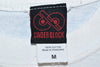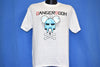 This awesome shirt is a piece of promotional merch for the 2005 hip hop album The Mouse and the Mask. The record remains the only studio album ever released by the supergroup known as Danger Doom, which was a collaboration between the artists Dangers Mouse and MF Doom. The album was also created through a collab with the Adult Swim programming block from Cartoon Network. To create the beats, Danger Mouse sampled music from several Adult Swim series, and voice actors like Dana Snyder and Dave Willis recorded dialogue as their characters specifically for the album.