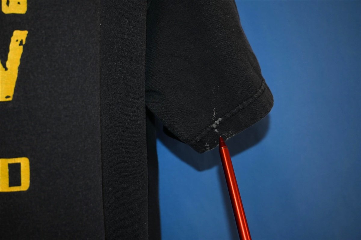 Fits like a modern unisex adult extra large. There are some small paint spots on the front and on the sleeve, see pics.