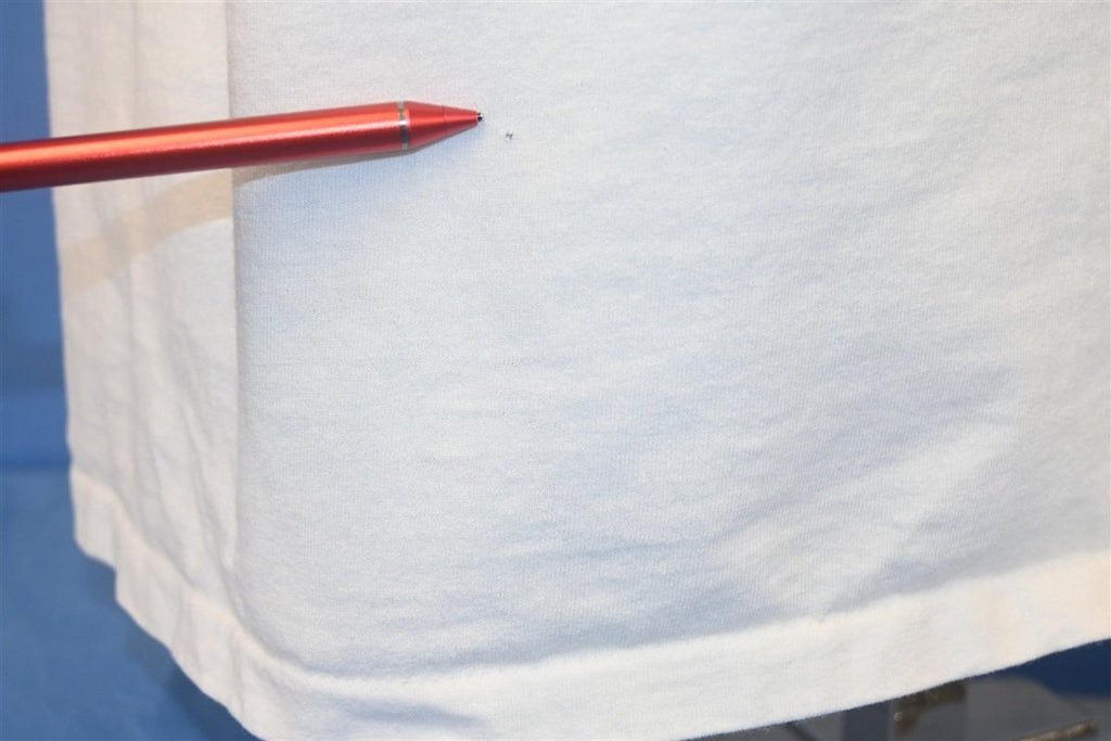 Fits like a modern unisex adult extra large. There is a small hole on the front, see pics.