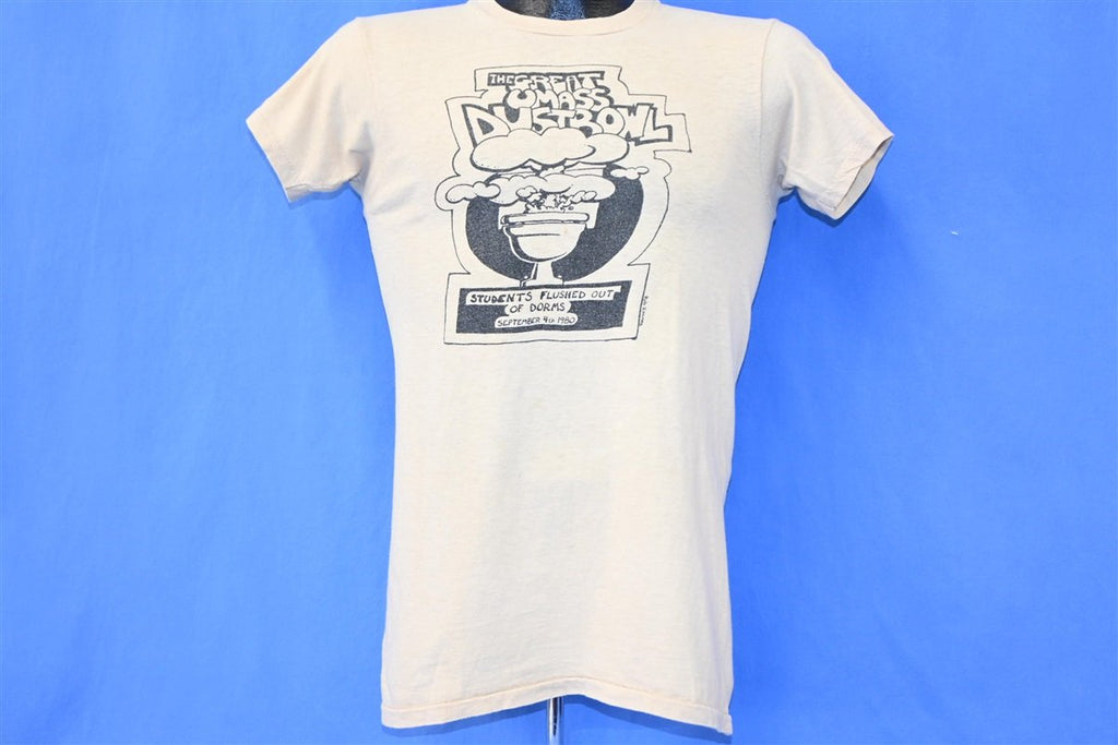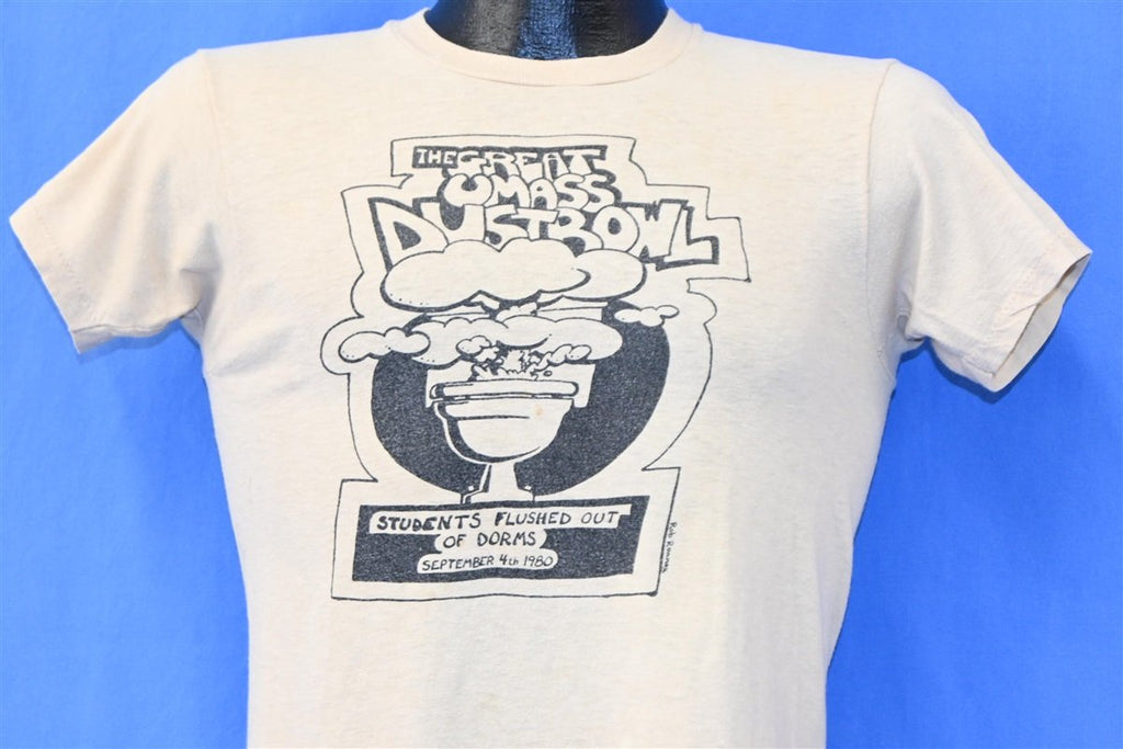 80s Great UMass Dust Bowl Students Flushed Out t-shirt Small