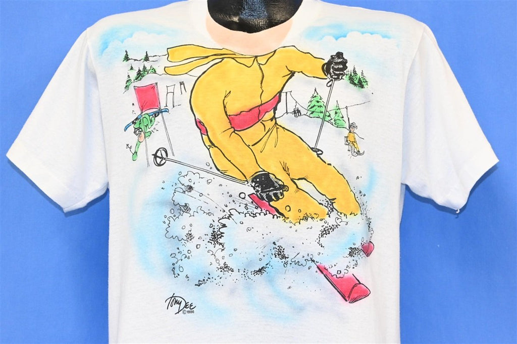 80s Skiing Big Head Funny Airbrush Caricature t-shirt Large