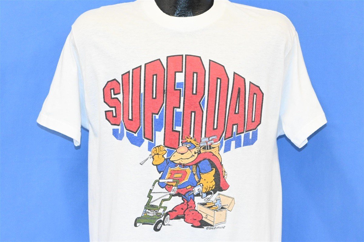 80s Superdad Superhero Cartoon Comic White t-shirt Large
