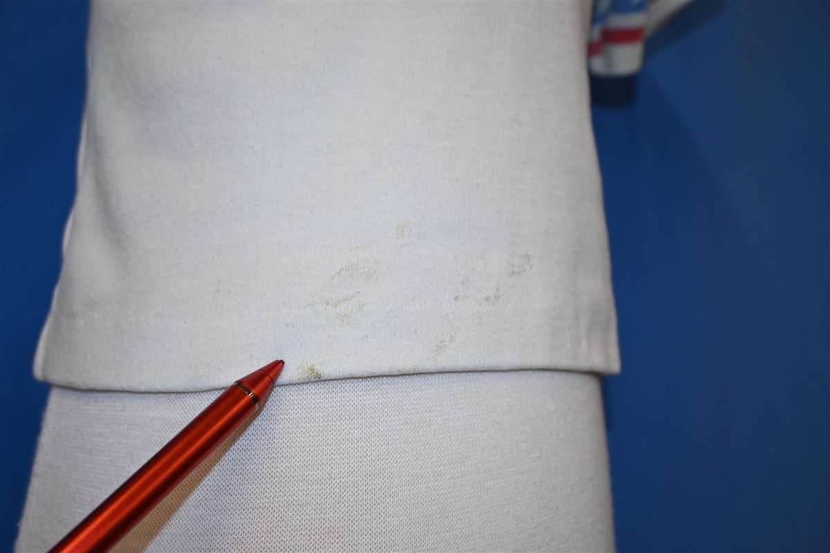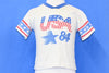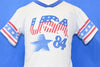 This cute, patriotic 80s tee is to celebrate the USA. This tee was likely manufactured to promote the Olympics in Los Angeles in 1984. The LA84 Olympics, as they were called, were one of the most commercially successful modern Olympic games and one of the first to be a global television event.