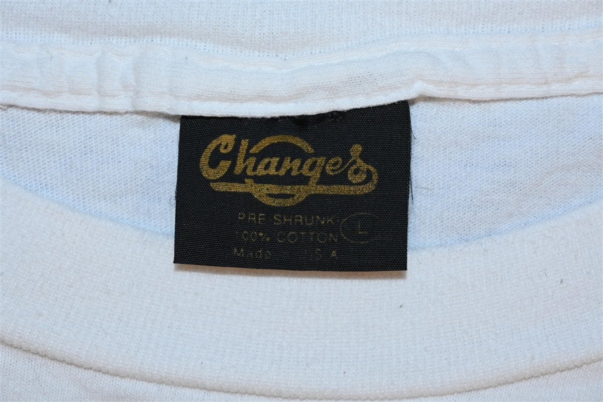 This awesome vintage tee features a large full color graphic celebrating the classic Japanese anime series Speed Racer, or as its known in Japan, Mach GoGoGo. The show was based off of a serialized manga featured in the magazine Shonen Book back in the mid 1960s. It was then adapted into an anime by Tatsunoko Productions, who would also go onto produce the show's 1997 reboot. This shirt is from the early 90s when the first major line of Speed Racer toys was developed along with a 13-episode long Americanized version of the show called The New Adventures of Speed Racer.