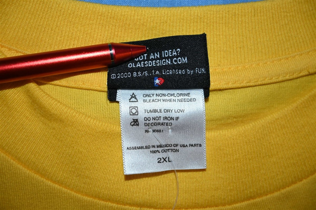 Fits like a modern unisex adult XXL or 2XL. This shirt is deadstock, unworn and new with tags. It has some spots on the back near the bottom hem, see pics.
