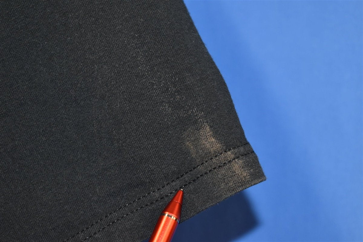 Fits like a modern unisex adult Extra Large. There is some discoloration on the back of the sleeve, see pics.
