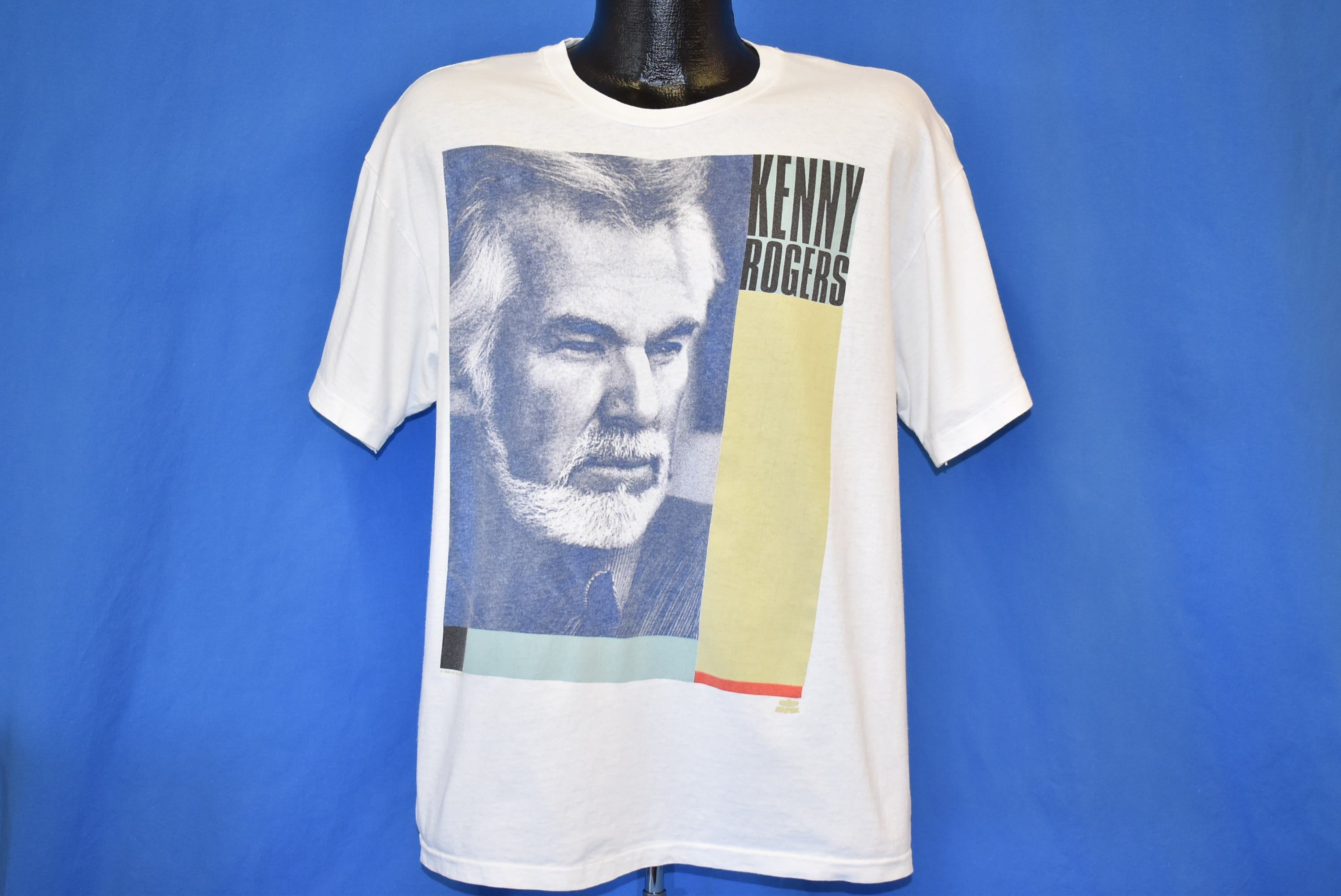 This 90s tee features country music superstar Kenny Rogers for his 1991 album, Back Home Again. While the album did not do well on the charts, it marked the 24th studio album by Rogers, and included single, "If You Want To Find Love."