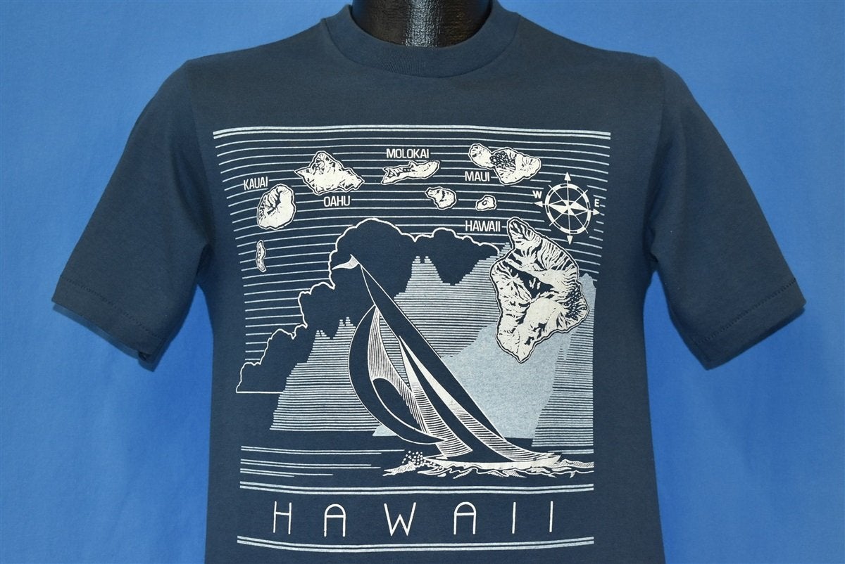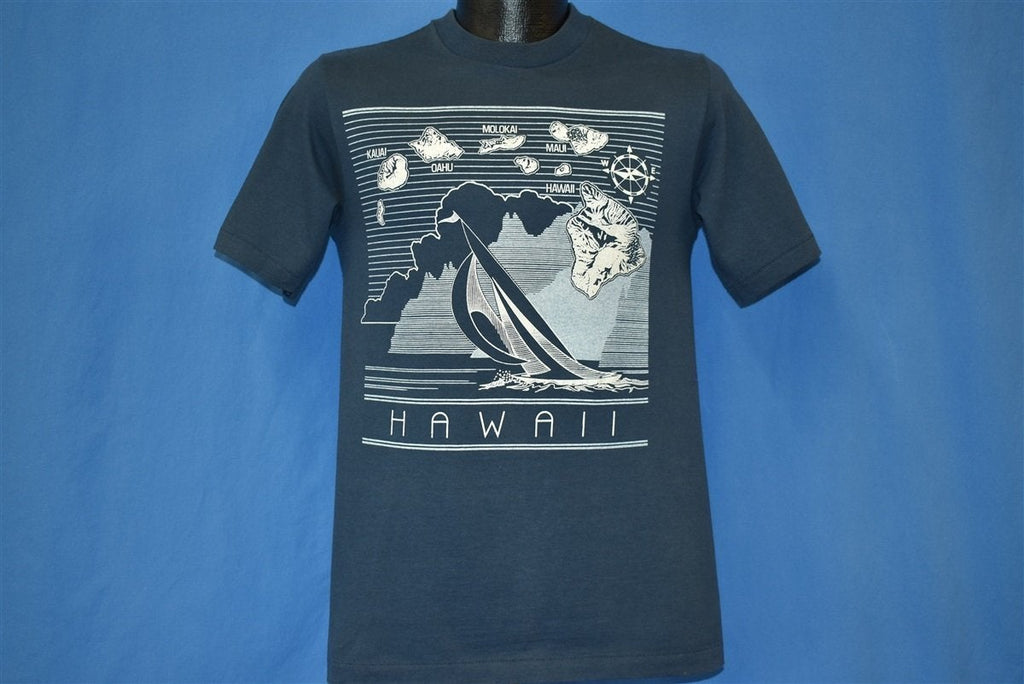 This vintage tee is dedicated to the beautiful island state of Hawaii. It's a 1980s original loaded with old school graphics, one hundred percent cotton, and a classic Softee tag.