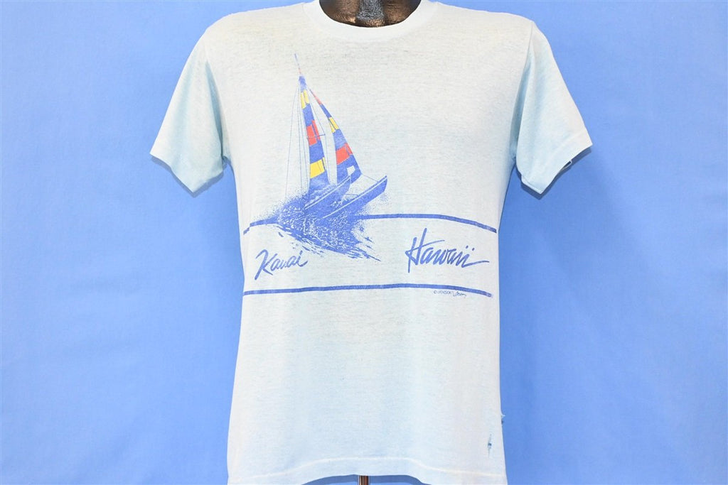 80s Kauai Hawaii Sailboat Island Soft Blue t-shirt Medium