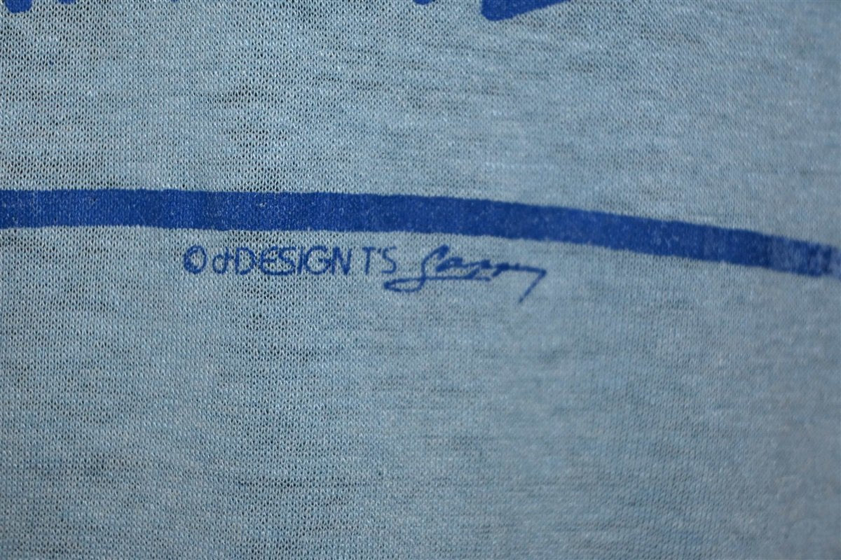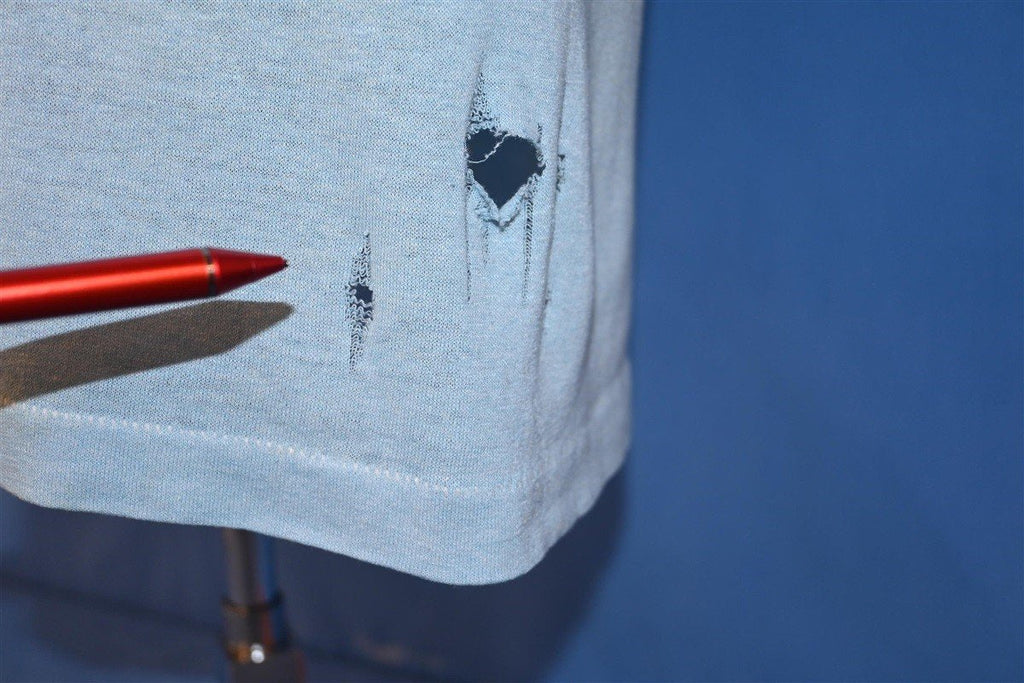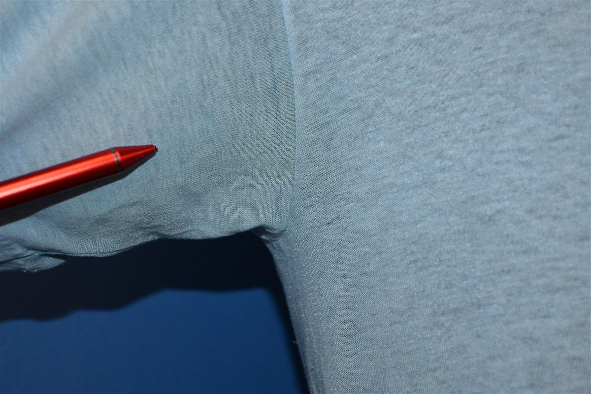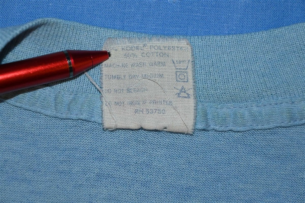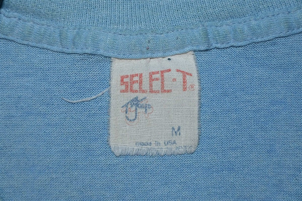 Fits like a modern unisex adult medium. This shirt is soft, thin, and distressed with some runs and discoloration under the arms, see pics.