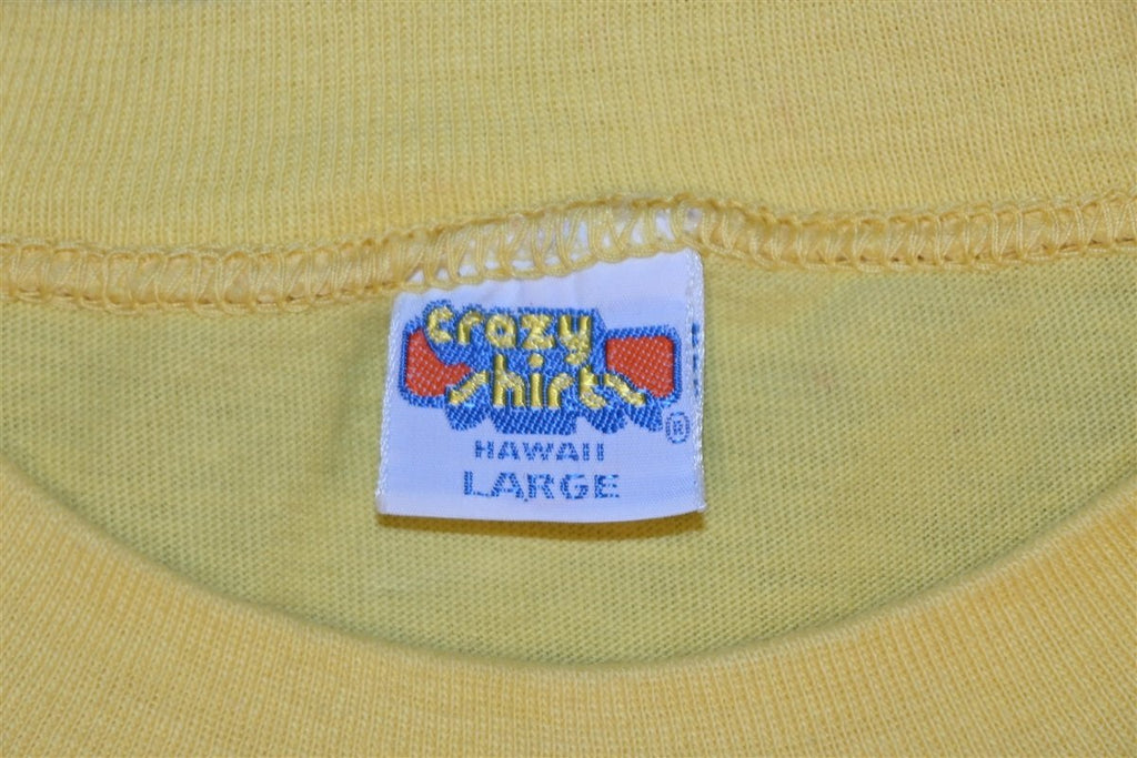 This cool tee is from the Val Nolasco Half Marathon of 1984. Val Nolasco was a piano player who became the first American to complete a marathon after having a heart attack. Val was trained and watched closely by a team trying to affirm that running was a heart healthy activity. Sponsors of this race were Bud Light and Coke and it took place in Honolulu, Hawaii.