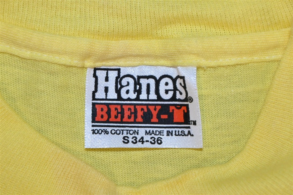 This cool tee is from the Honolulu Hale Fun Run of 1983. Featured on the front is the seal of Honolulu. Hale is a word used in Hawaii to mean house or building. This was likely a fun run that was hosted by the Honolulu city council.