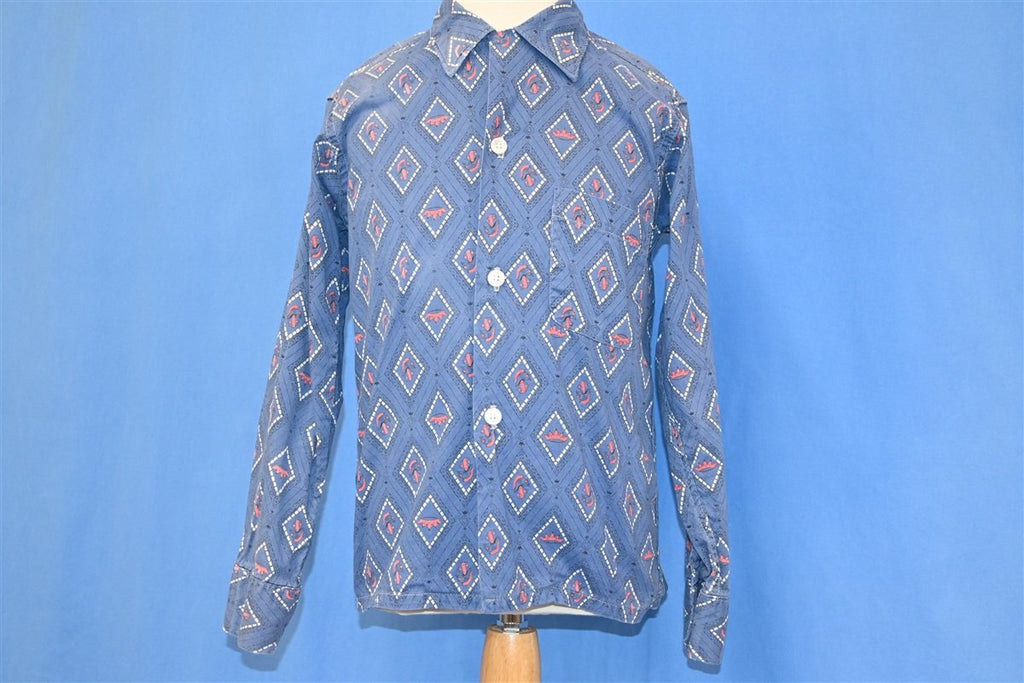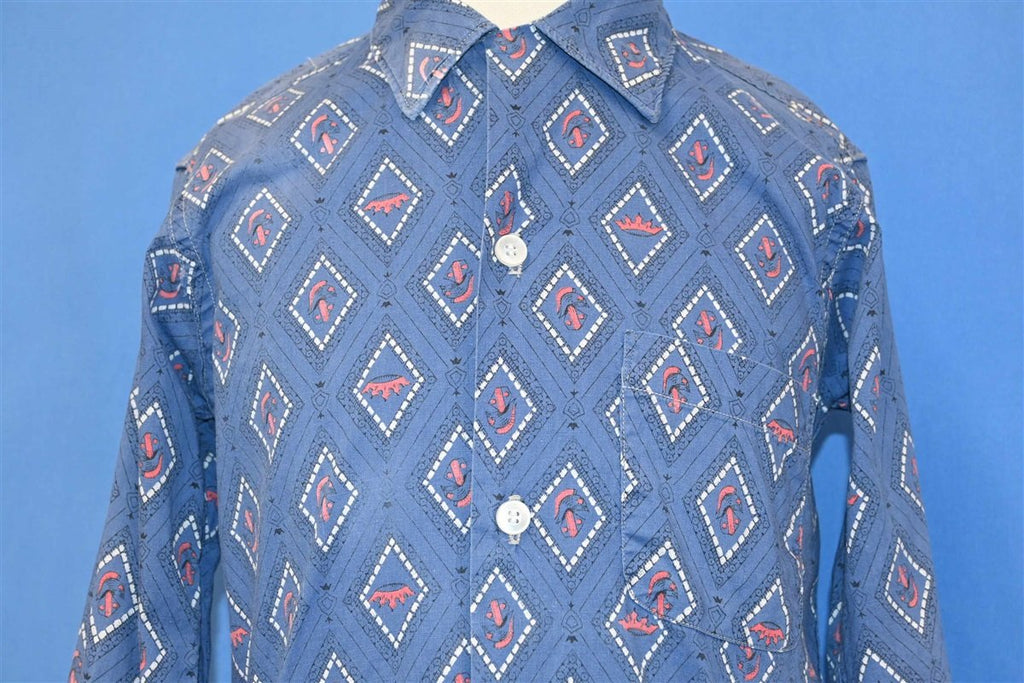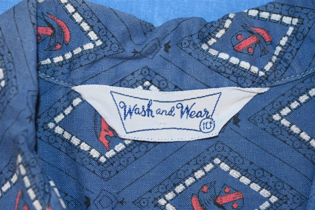 60s Blue Crown Knight Button Down Shirt Youth Small