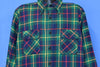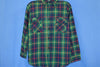 60s Five Brother Green Blue Plaid Button Down Shirt Extra Large
