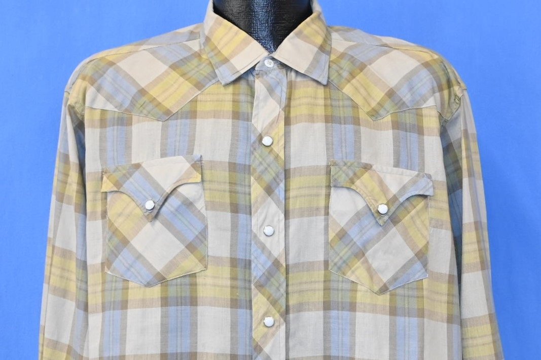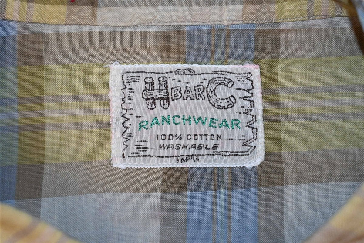 60s H Bar C Check Plaid Pearl Snap Cowboy Shirt Extra Large
