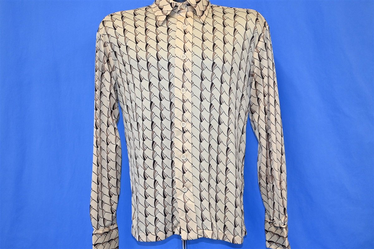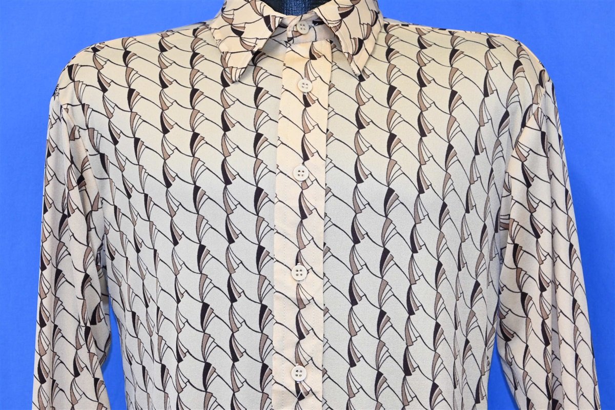 70s Cellini Beige Geometric Diagonal Disco Shirt Small