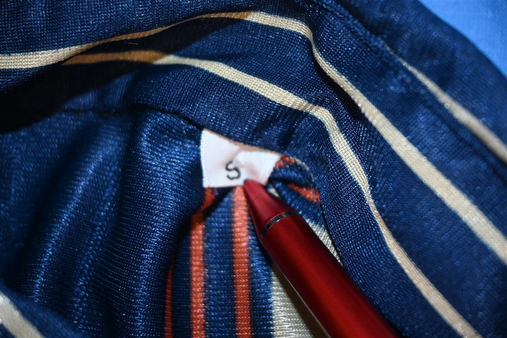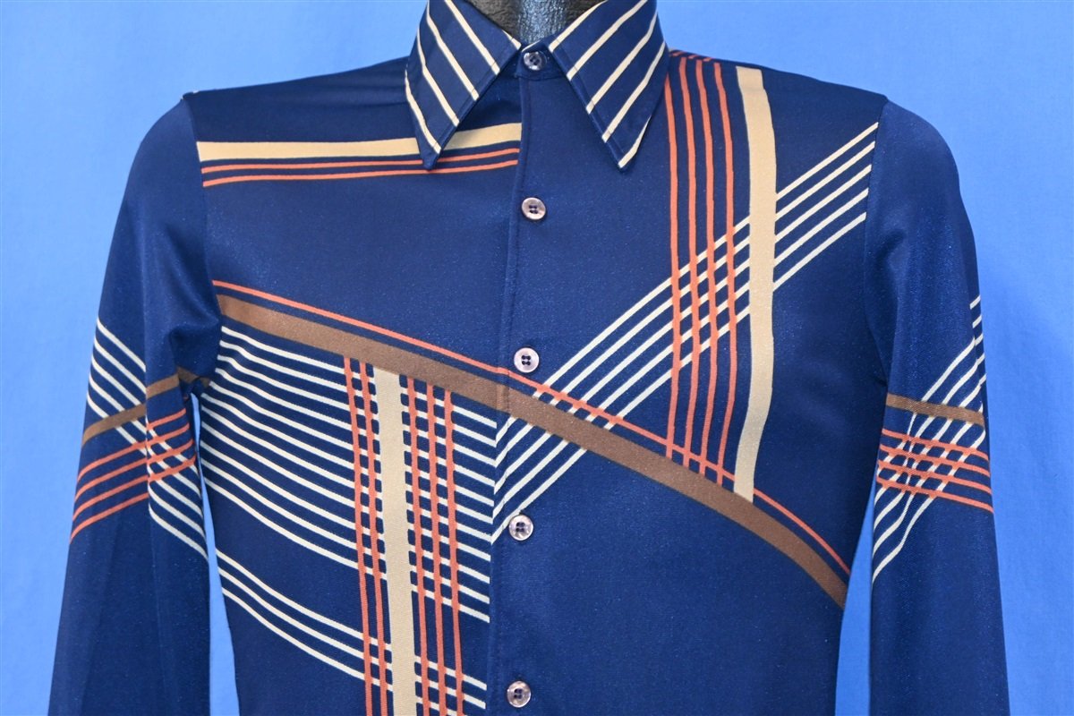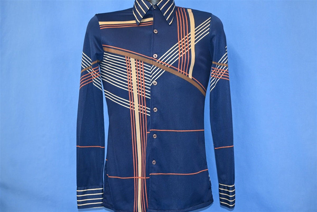 70s Geometric Striped Navy Blue Disco Shirt Small