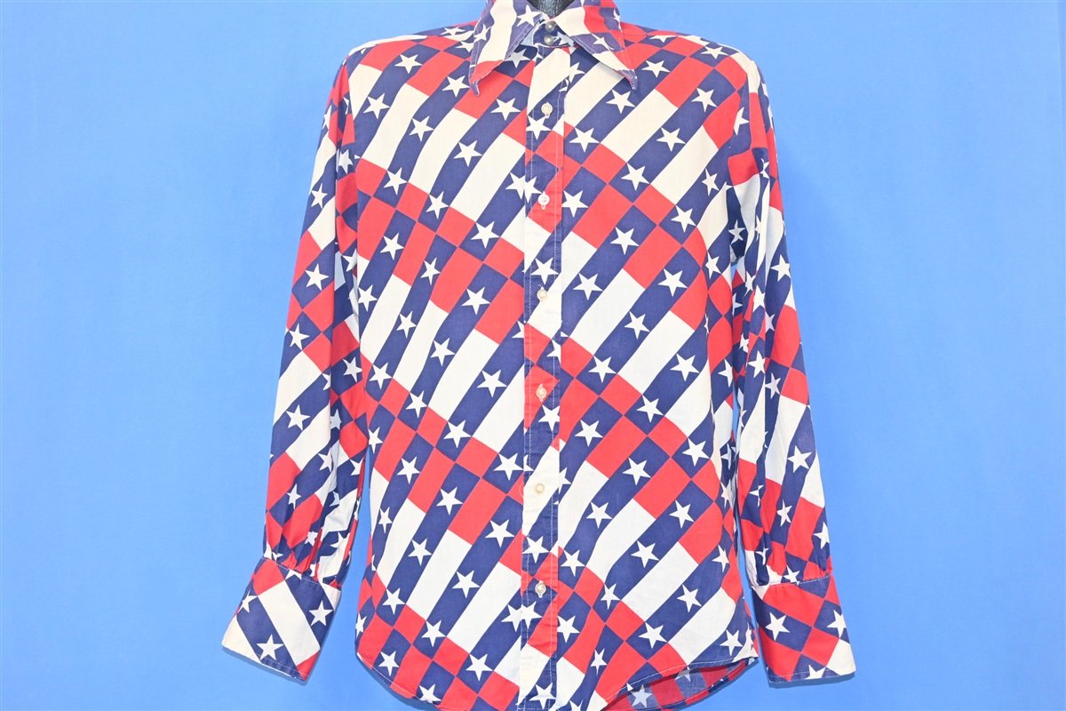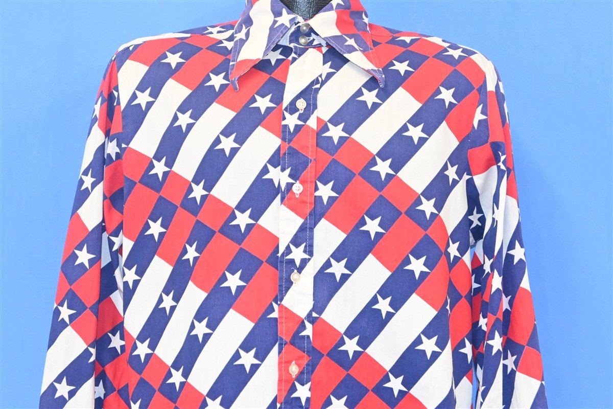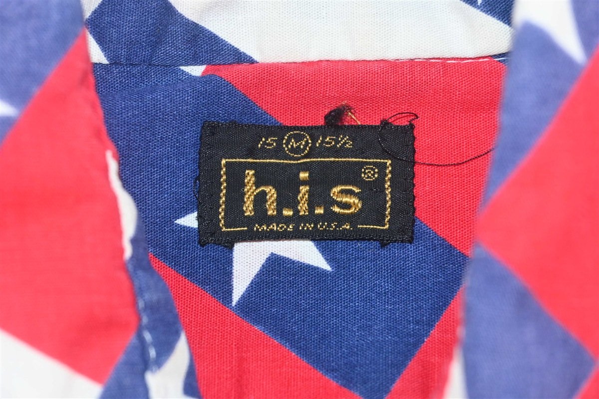 70s H.I.S. Stars & Stripes Big Collar Button Down Shirt Medium