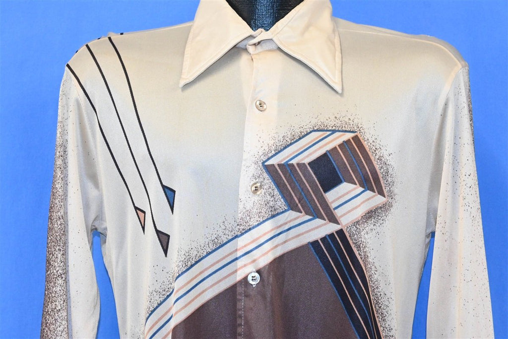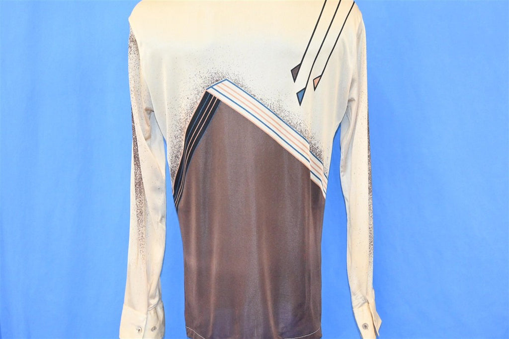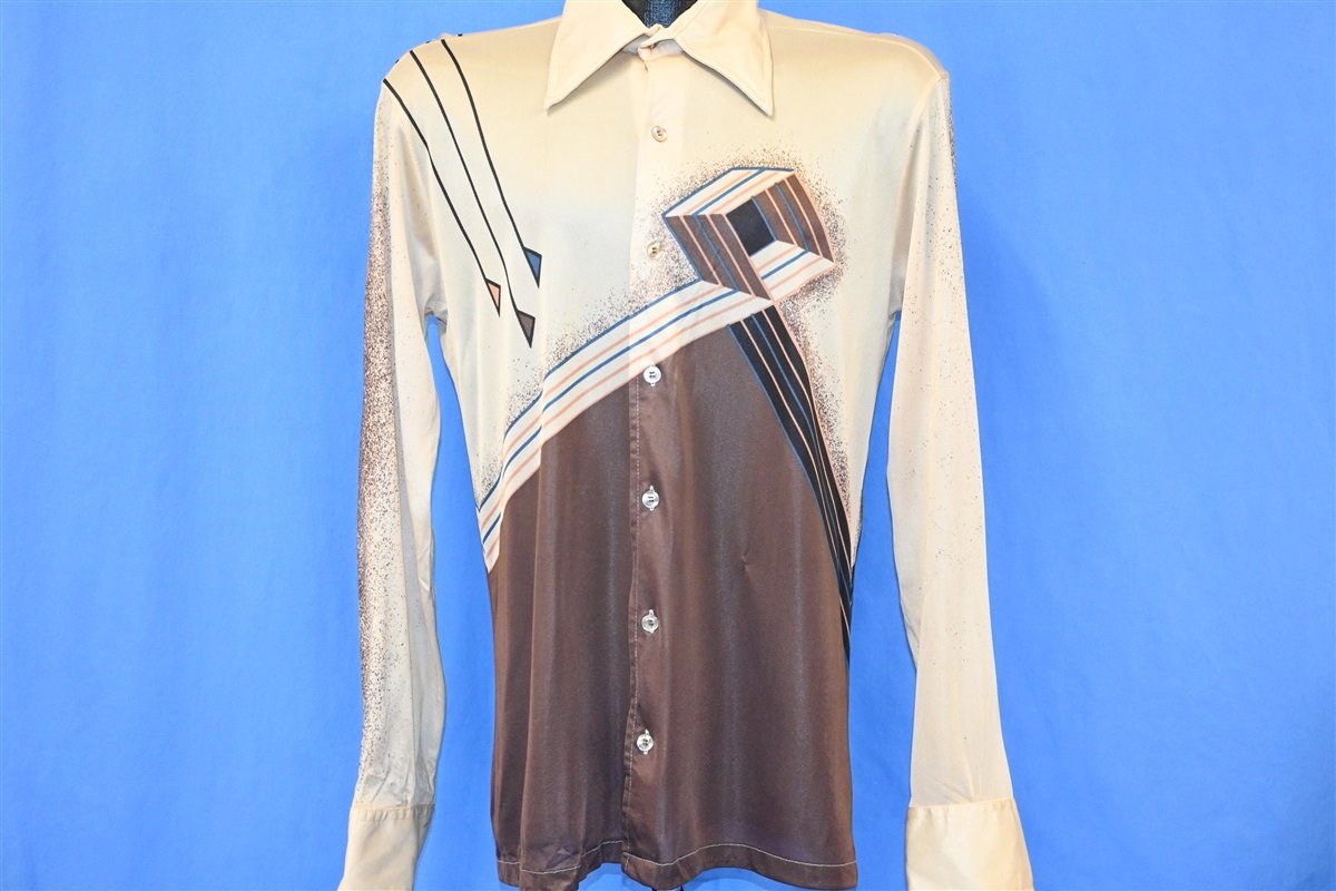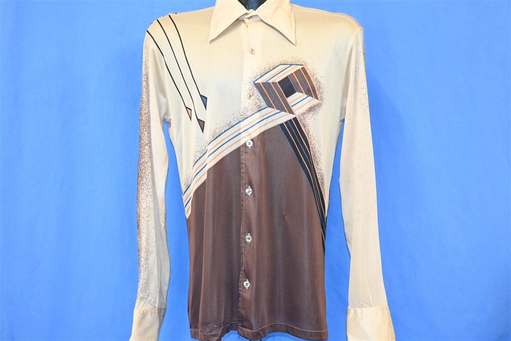 70s La Strada Brown Geometric Acetate Disco Shirt Small