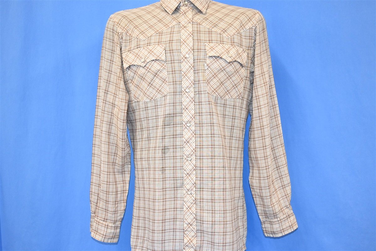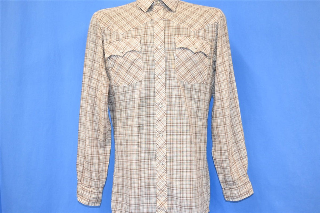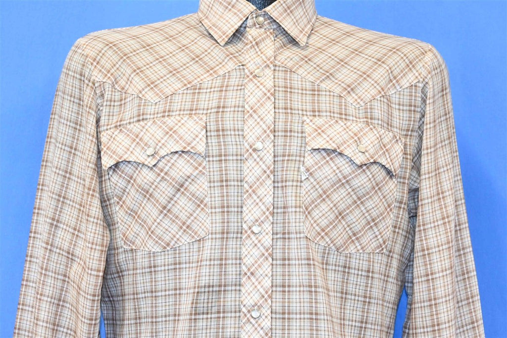 70s Levi's Big E Brown Plaid Western Pearl Snap Shirt Medium