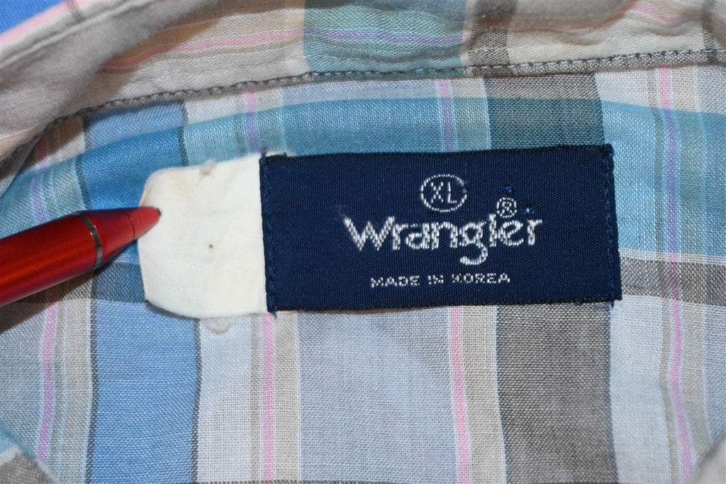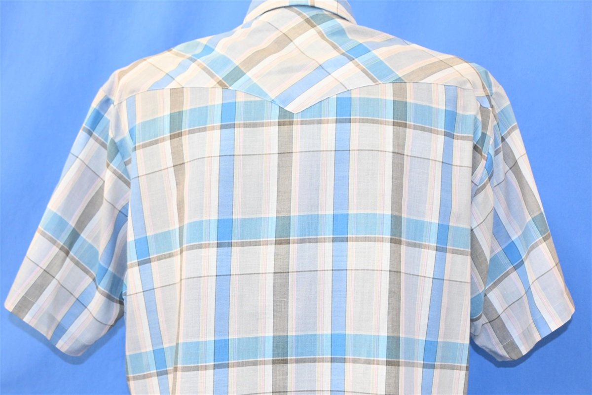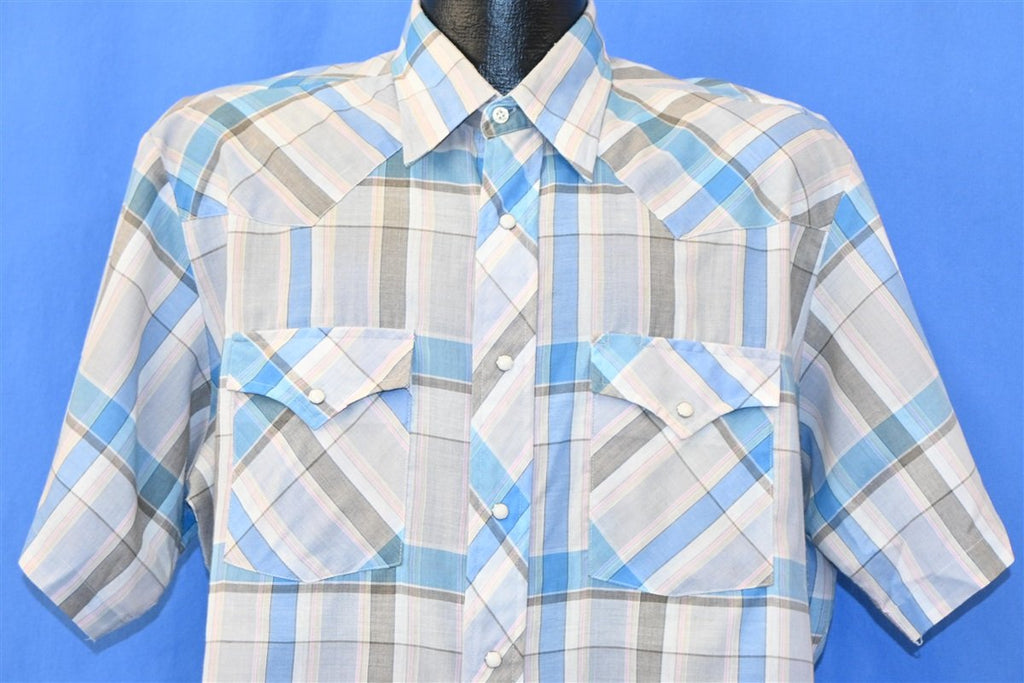 80s Wrangler Blue Plaid Western Pearl Snap Shirt Extra Large