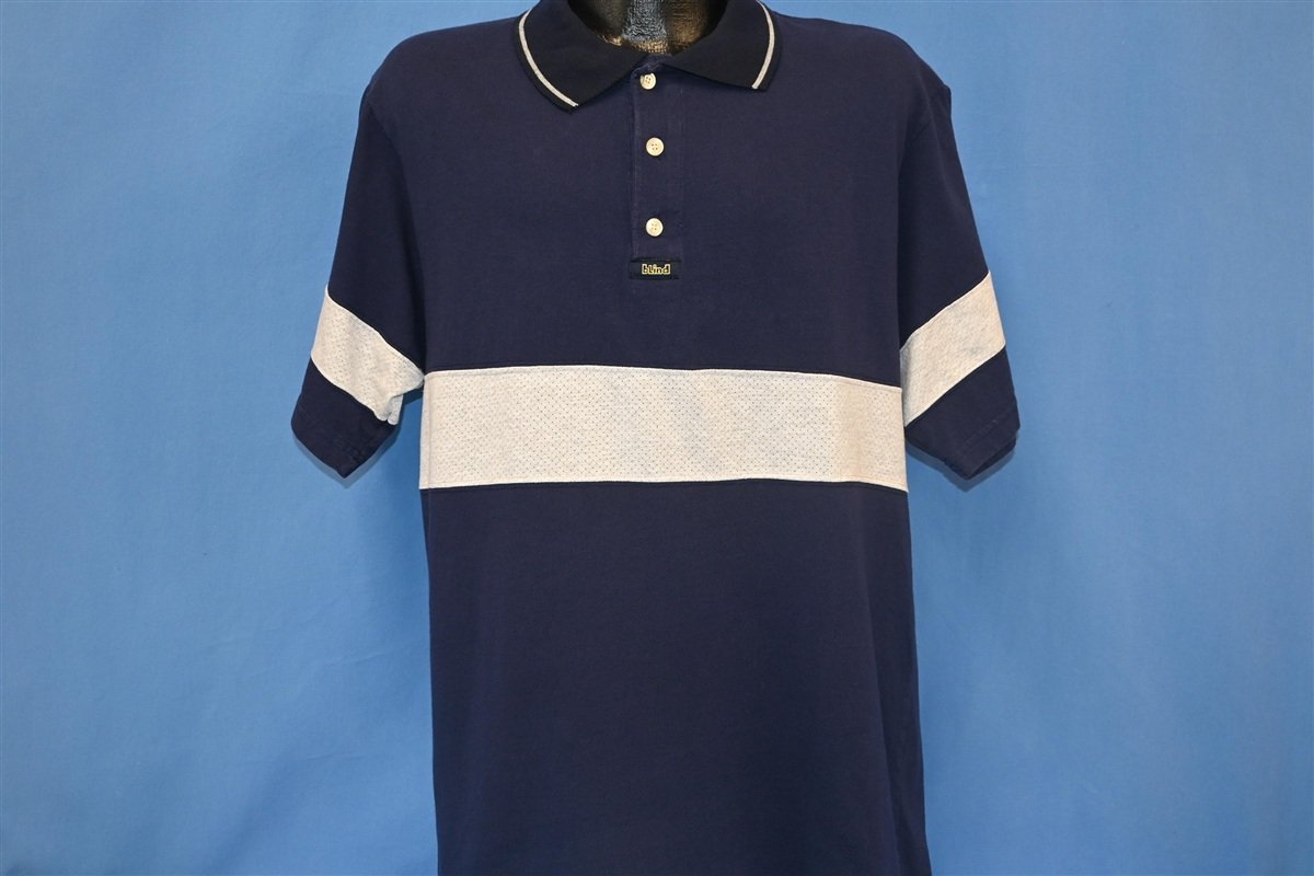 90s Blind Skateboards Navy Blue Striped Polo Shirt Small