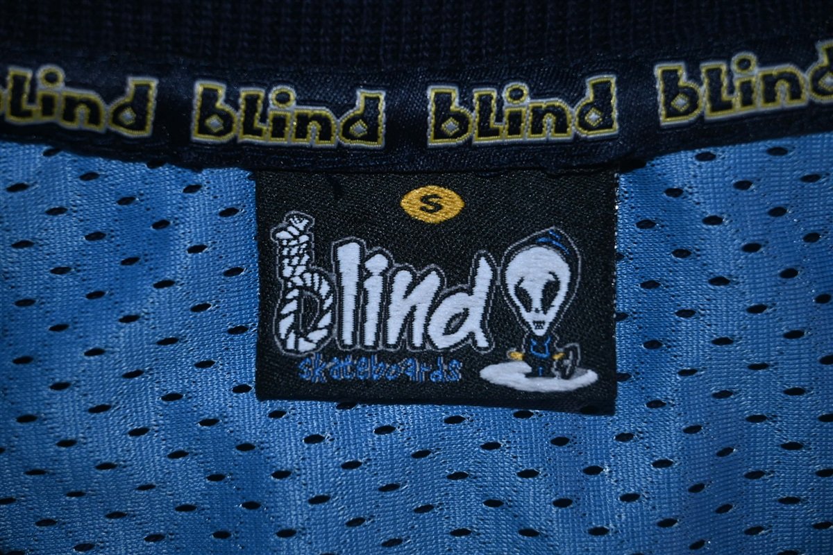 This awesome vintage polo shirt was made by the skate brand, Blind Skateboards. The company was founded in the late 80s, by the professional skateboarder Mark "The Gonz" Gonzales. Often credited as the Godfather of modern street skating, Gonzales started Blind alongside Steve Rocco. The company gained notoriety in the skate scene with the release of their first video in 1991, Video Days, which was directed by Spike Jonze. The video showcased several notable members of the Blind skateboard team, including Danny Way, former Powell Peralta skater Guy Mariano, and future Hollywood actor, Jason Lee.