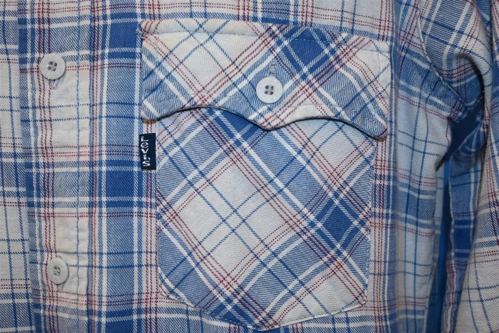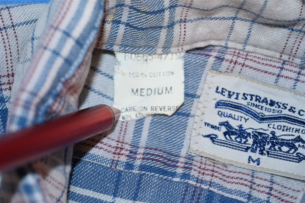 90s Levi's Blue Red Plaid Flannel Button Down Shirt Medium