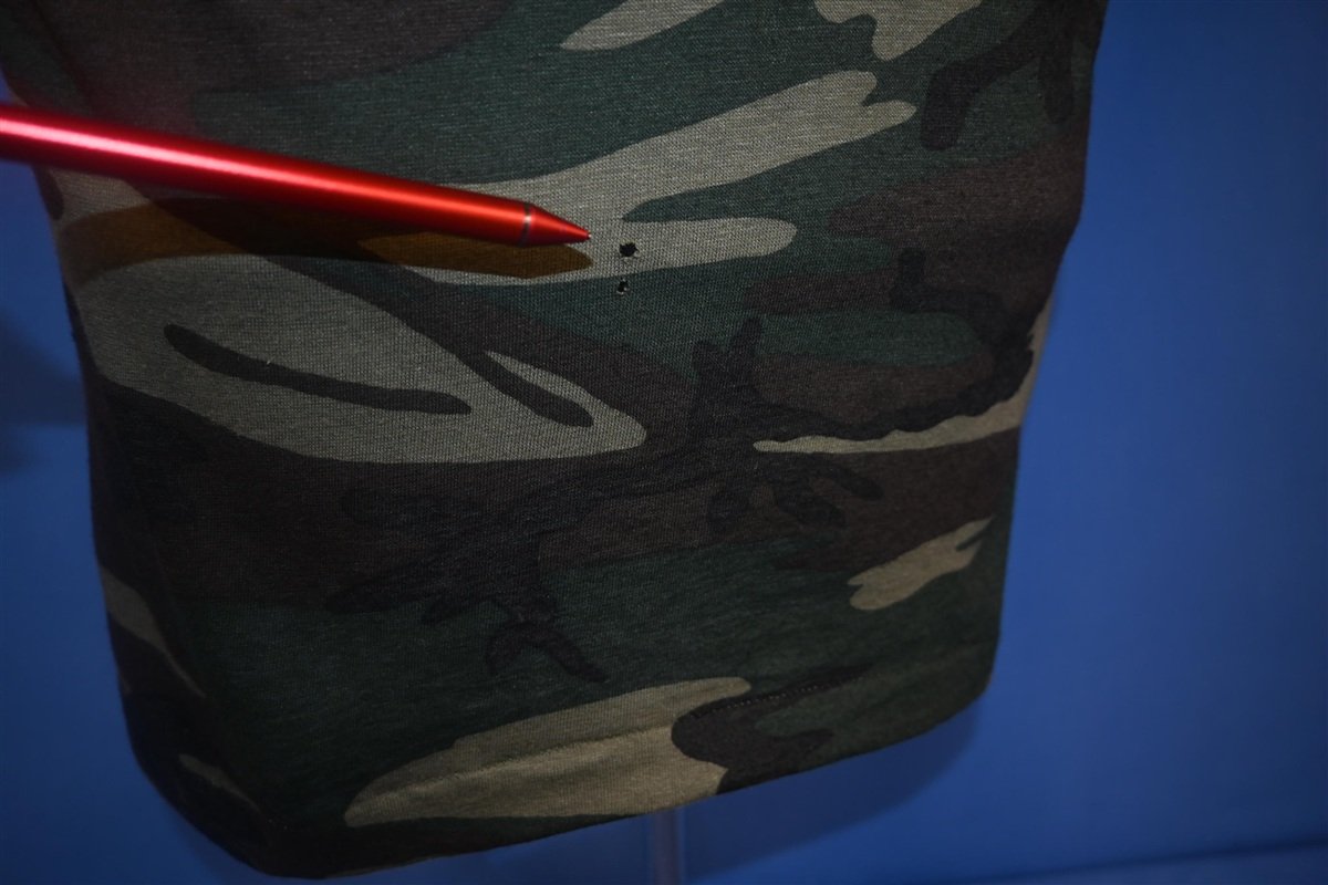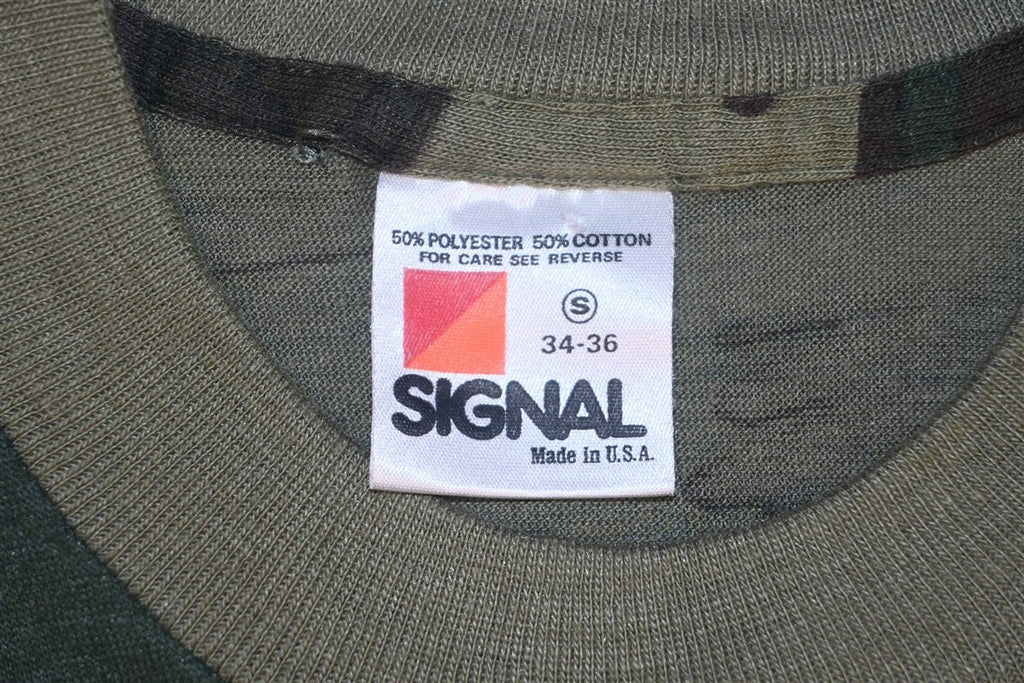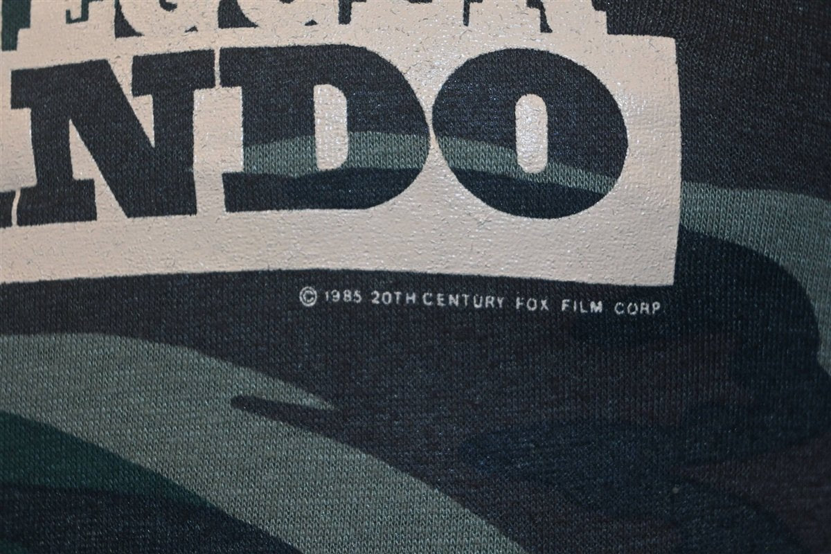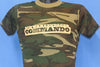 This sweet camouflage t-shirt promotes the 1985 movie Commando, starring Arnold Schwarzenegger. Commando was a box office success that was released during the height of Schwarzenegger's acting career. It came a year after the actor played the titular role in the iconic scifi film The Terminator, and helped solidify Schwarzenegger as one of the most legendary action movie stars of the decade.