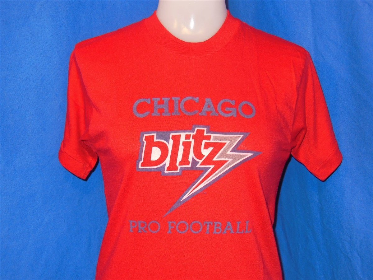 This shirt if for the professional football team the Chicago Blitz. They were apart of the United States Football League also known as the USFL. They played their home games at Solider Field, home of the NFL's Chicago Bears. The idea behind the USFL was to have teams playing during the off season, allowing football to continue into the spring and summer after the regular season of the NFL and college football had ended. The league only lasted from 1983-1985.