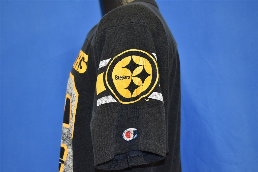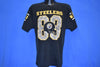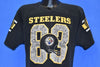 This sweet vintage jersey is for the professional football team the Pittsburgh Steelers and features the number 83. Up until the early 80s, number 83 belonged to wide receiver Theo Bell. Bell was selected in the fourth round of the 1976 NFL draft after playing for the University of Arizona. He was on the Steelers until 1980 and he earned two Super Bowl rings with the team, one in 1979 and the other in 1980. After his departure, Bell played in the NFL for several more years with the Tampa Bay Buccaneers. Bell is the Steeler's second-leading career punt returner after Rod Woodson.