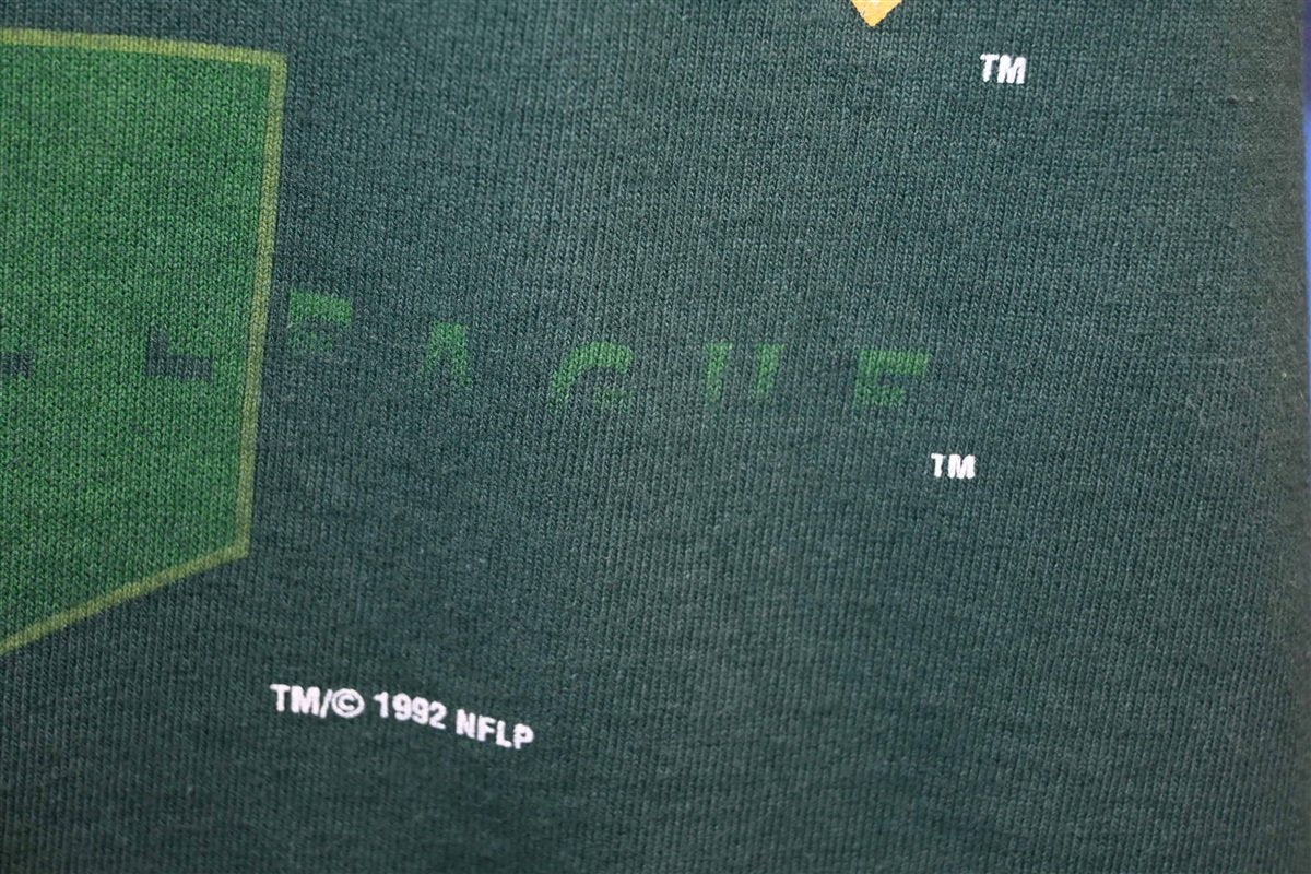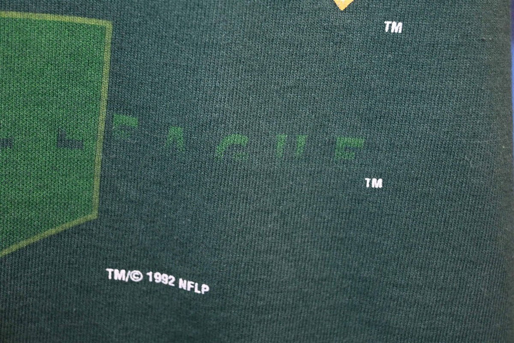 This sweet v-neck tee proudly reps the Green Bay Packers. This shirt hails from the 90s, when the team scored their first Super Bowl victory since the departure of Vince Lombardi. During the 90s, the team featured notable players like Brett Favre, Desmond Howard, and Reggie White. With this lineup they dominated the 1996 NFL season, and defeated the New England Patriots in Super Bowl XXXI.
