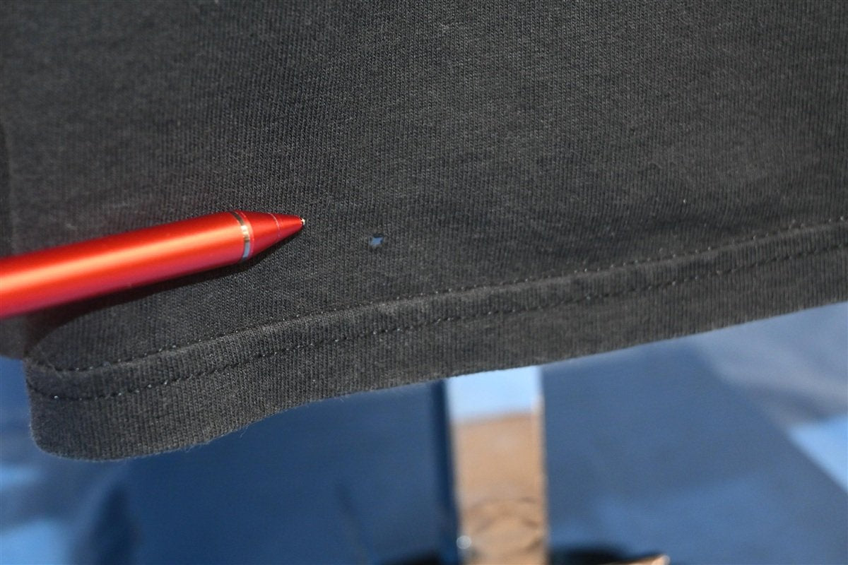 Fits like a modern unisex adult extra large. There is some discoloration on the back and on the left side when wearing, see pics.