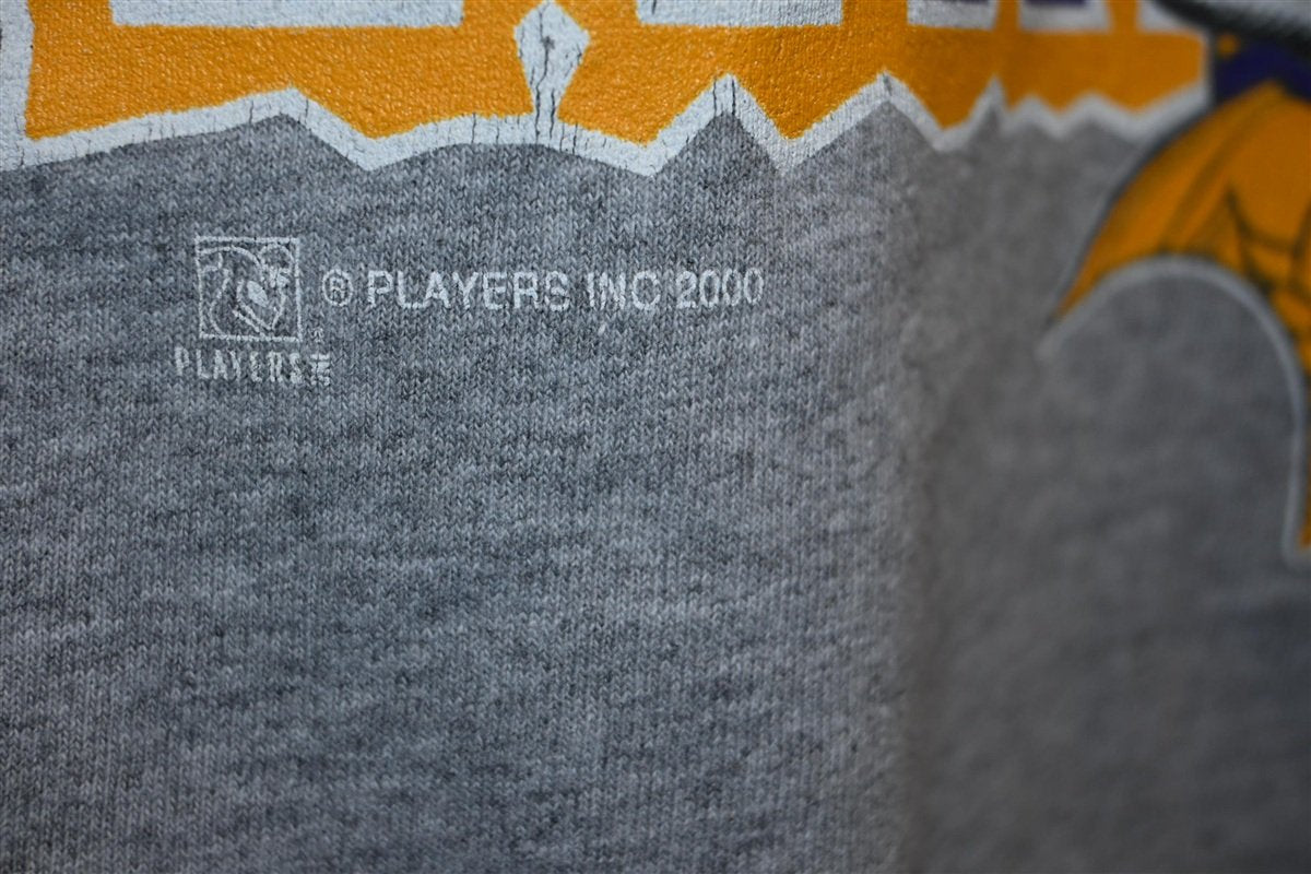 This awesome tee reps the Minnesota Vikings and it features three notable players from the turn of the century: Randy Moss, Daunte Culpepper, and Cris Carter. All three members of the team were invited to the 2001 Pro Bowl, after they helped the Vikings win the Divisional Playoffs. This shirt also makes a reference to a popular stadium anthem of the early 2000s, "Who Let the Dogs Out". The song was released by the Baha Men in summer of 2000, and it earned them a Grammy Award for Best Dance Recording.