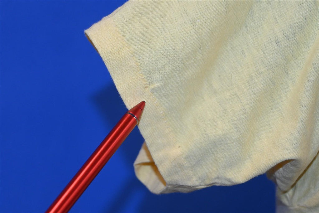 Fits like a modern unisex adult medium. There is a repair on the back of the left sleeve when wearing, see pics