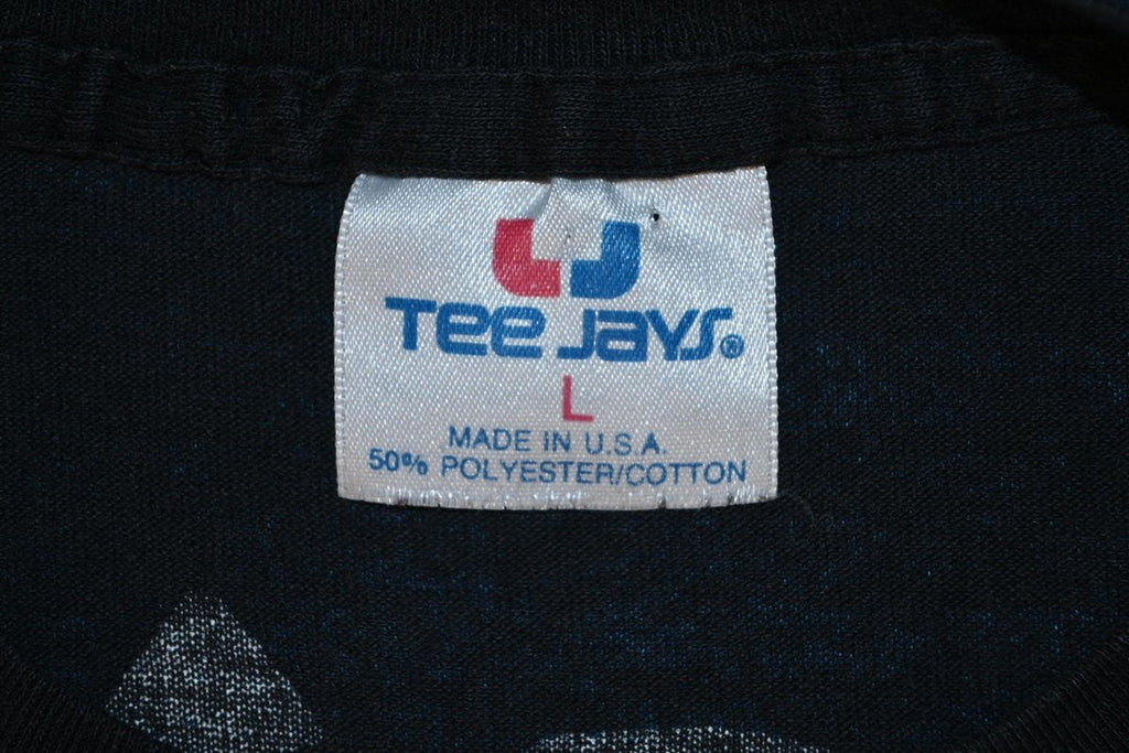 This awesome vintage concert tee is for the band Great White and their Highway Hunter Tour from the late 80s. Great White was one of the many bands to emerge out of the Los Angeles heavy metal scene in the 80s. This shirt is from their most successful era, when they reached mainstream popularity thanks to their platinum selling albums Once Bitten and ...Twice Shy, which were named after their biggest hit, a cover of the Ian Hunter song "Once Bitten, Twice Shy". The music video for the track, along with several of their other songs, received significant airplay from MTV, and it notably featured the model Bobbi Brown, who was famous for also appearing in Warrant's video for "Cherry Pie". This shirt highlights another song off the album ...Twice Shy, "Mista Bone", which was another popular radio hit for the band.