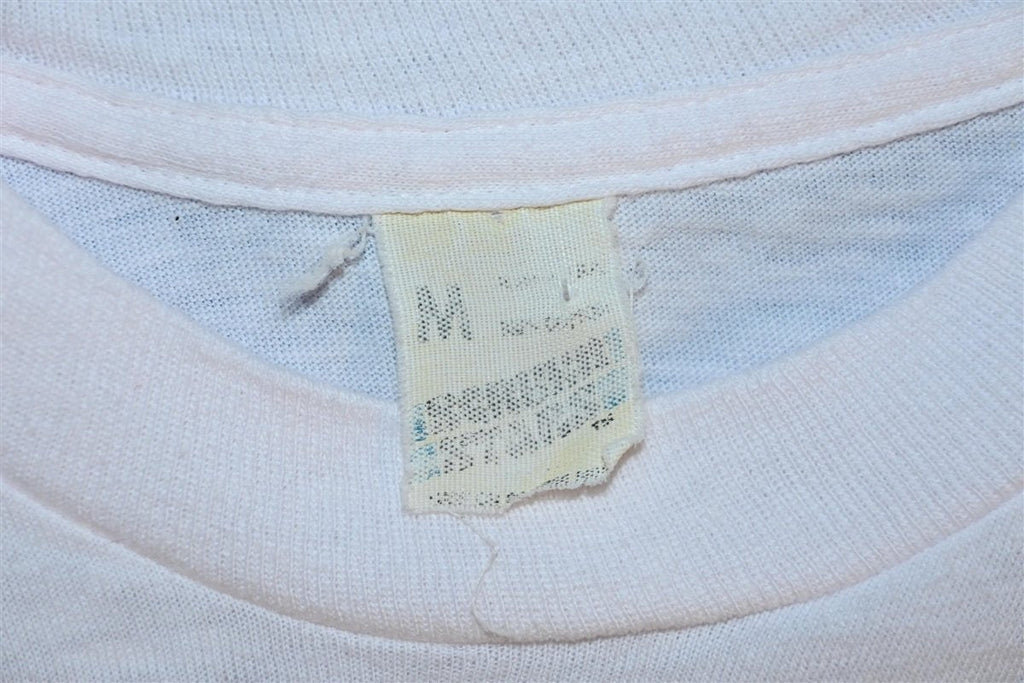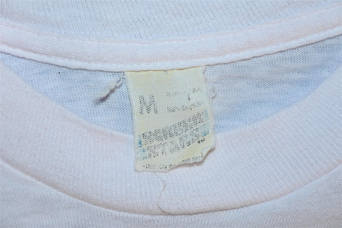 This sweet t-shirt promotes the Uh-Huh 1984 tour by John Cougar Mellencamp. The Uh-Huh album is his 7th studio album from 1983 and his first album in which he used his real last name, Mellencamp. The album had three top 20 Billboard Hot 100 hits, these included "Pink Houses", "Crumblin' Down", and "Authority Song". During the tour Mellencamp would open his shows with cover versions of songs he admired as a kid.