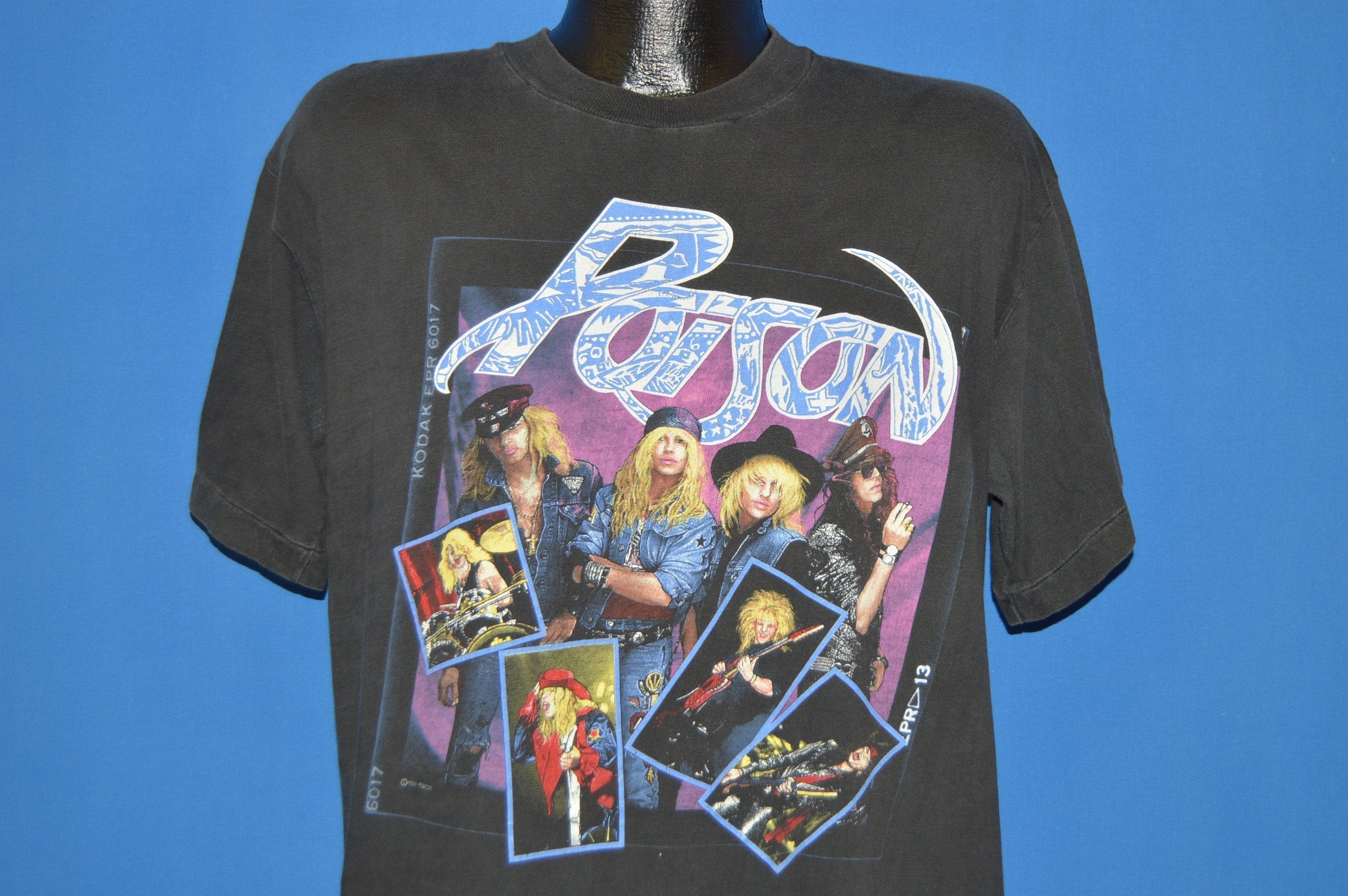This black shirt is from for the heavy metal band Poison and is from the bands second studio album "Open Up And Say...Ahh!" album released in 1988. The album was certified platinum the same year and went 5 times platinum in 1992. The album became the bands most successful album ever featuring hit singles such as "Nothin But A Good Time","Fallen Angel" and the bands only number one hit single "Every Rose Has Its Thorn" which stayed at the #1 spot for three weeks.
