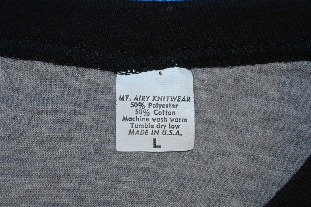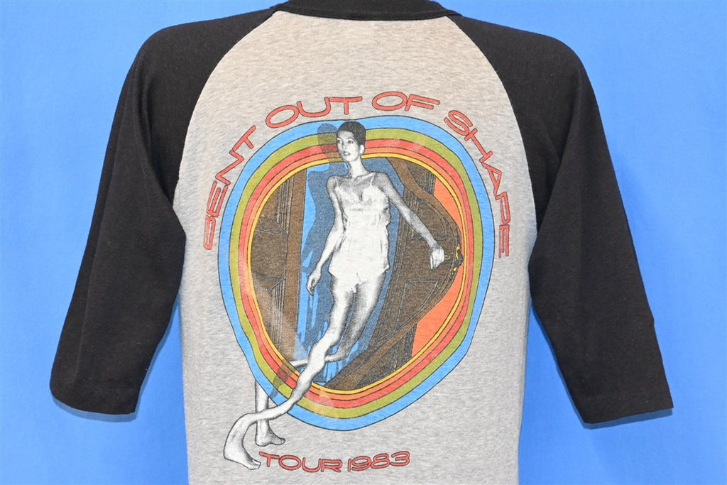 This awesome raglan rock tee is for the British supergroup Rainbow. This shirt features double-sided graphics and promotes the band's 1983 Bent Out of Shape Tour which promoted the album of the same time. This album was released after Ronnie James Dio returned to Black Sabbath, and at this point in time Rainbow consisted of Ritchie Blackmore, Roger Glover, Joe Lynn Turner, David Rosenthal, and Chuck Burgi.