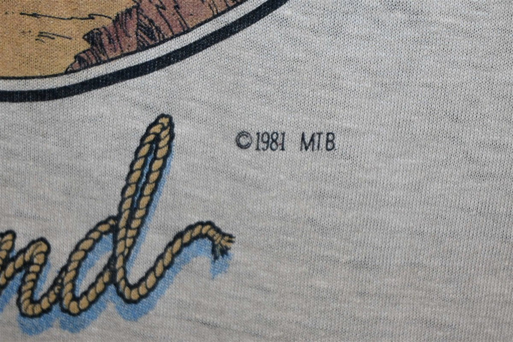 This cool concert shirt was made for the Marshall Tucker Band, and it comes from a 1981 tour promoting their eleventh studio album, Dedicated. Released a year after his tragic death, this album was dedicated to the memory of the band's founding bassist, Tommy Caldwell, as well as his brother Timmy. The band continued to record and perform together following the tragedy, and have remained active into the 21st century, although many of the original members departed the group by the mid 80s.
