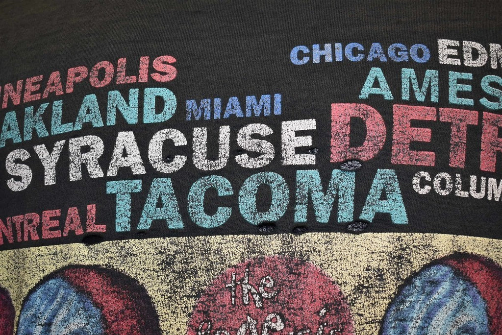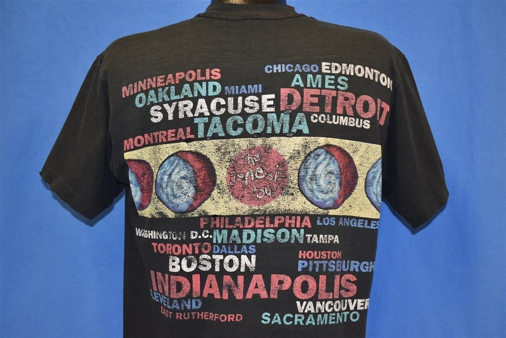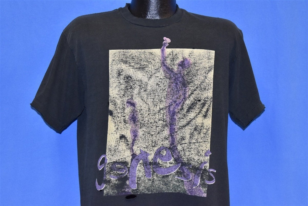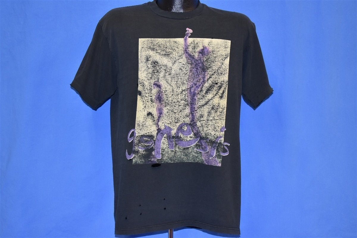 This vintage band t-shirt is for Genesis from their We Can't Dance Tour which promoted the 1991 album of the same name. This was the band's last studio album with drummer and singer Phil Collins. He departed the band in 1996 in order to pursue his solo projects full time. We Can't Dance ended up being the group's fifth consecutive No. 1 album in the UK. It also reached No. 4 in the US. The title song wound up receiving a Grammy Award nomination for Best Pop Performance by a Duo or Group with Vocals.
