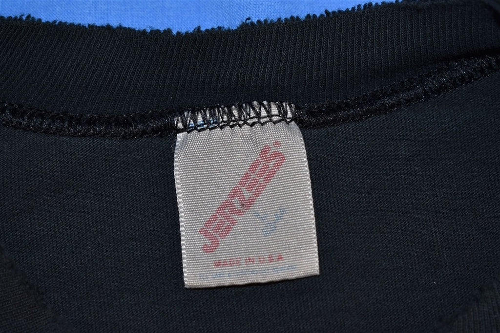 Fits like a modern unisex adult large. This shirt is distressed with lots of holes, see pics.