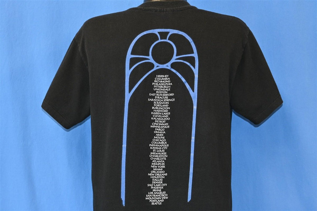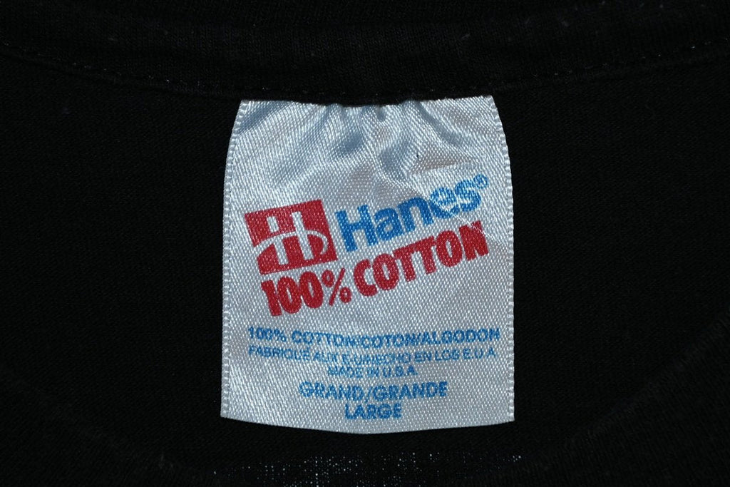 This amazing vintage concert tee is for the singer Meat Loaf and it commemorates his tour for the 1993 album Bat Out of Hell II: Back Into Hell. While the back of the shirt includes a list of all the cities visited the front features the graphic used for the cover of his single "Rock and Roll Dreams Come True" off the album.