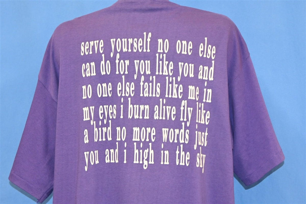 This amazing vintage tee is for the seminal 90s alternative rock band, The Smashing Pumpkins. The shirt comes from the early days of the group and it features lyrics to their song "Starla" which first appeared as a b-side on their debut single "I Am One", although "Starla" was only featured on the Gish CD version and UK vinyl releases of the single. The US version of "I Am One", released by Limited Potential Records, has since become a coveted collector's item, as only 1500 copies of the record were pressed.