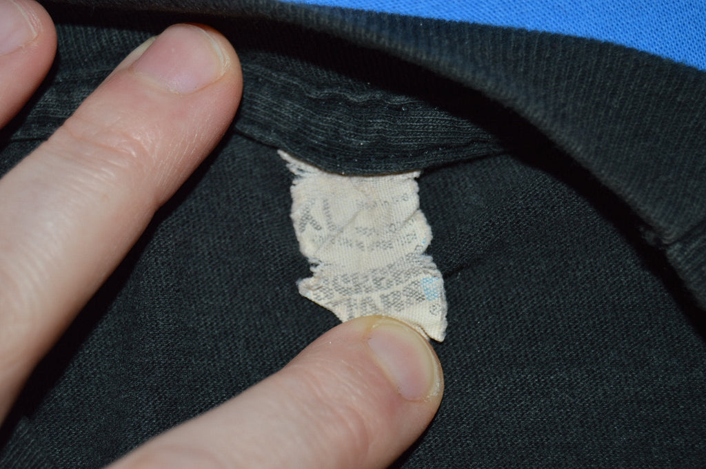 This awesome double-sided concert tee is for the band Styx for their Edge of the Century Tour in 1991. The tour was designed to promote their album of the same name. This album included the hits "Show Me the Way", "Love is the Ritual", and "Love at First Sight". It was also the last album released before drummer John Panozzo's death in 1996. The tour and album were a great success but shortly afterward the band was dropped by their label A&M Records, which had been purchased by Polygram Records. The growing popularity of grunge is what caused the band to be let go.