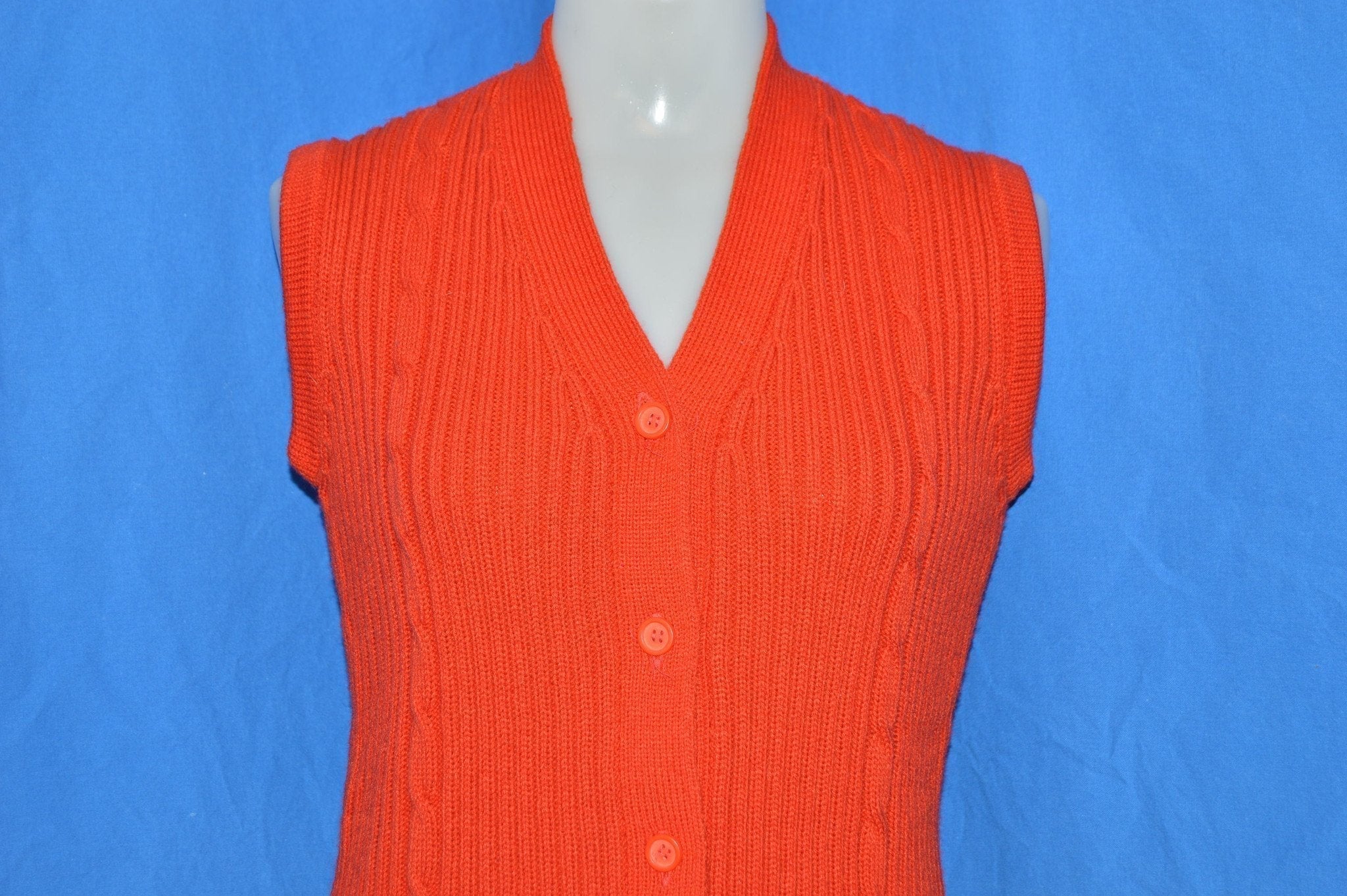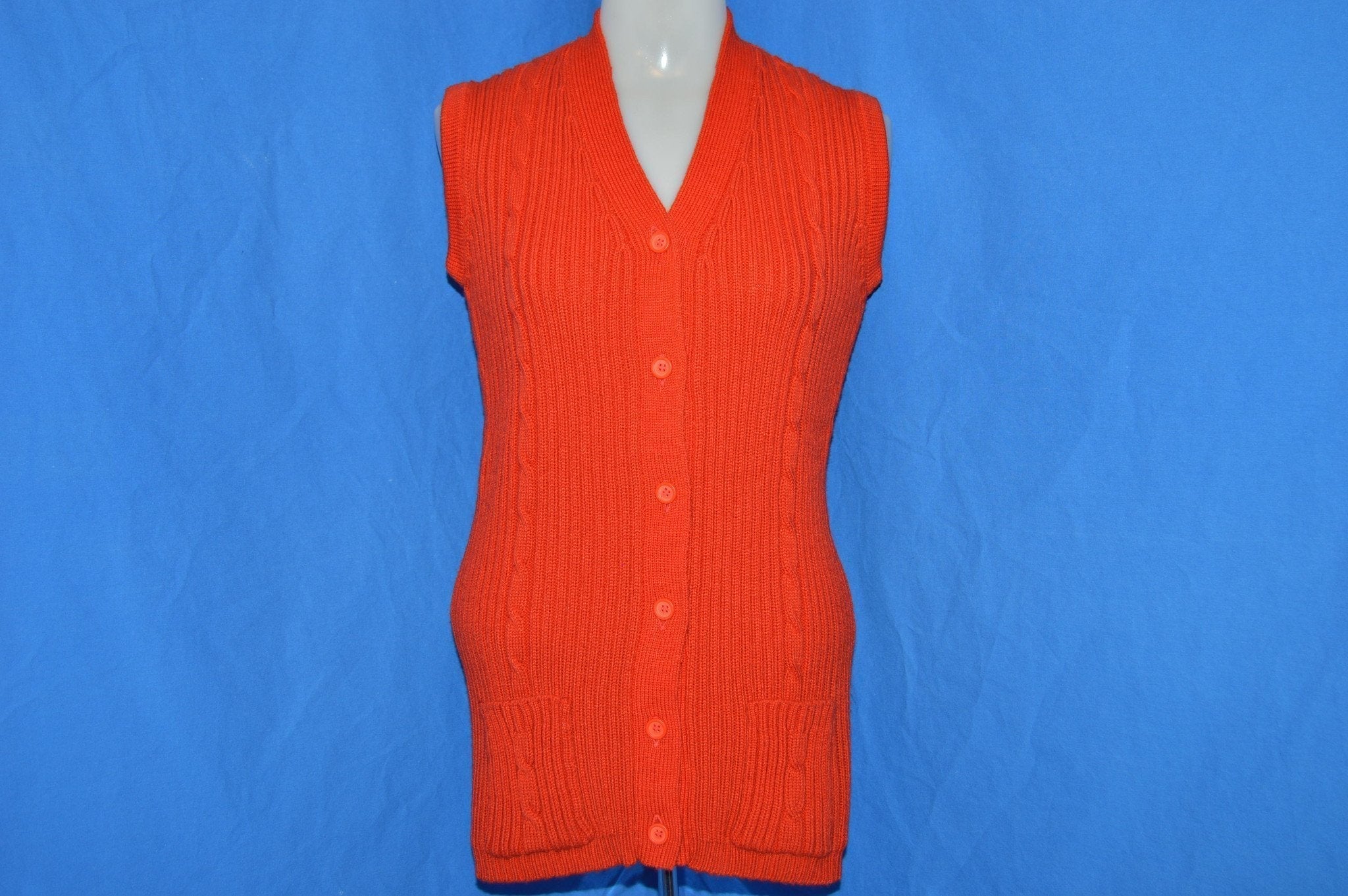 This cherry red long line cable / rib knit button down sweater vest is a timeless layering piece! Tag says 38, fits like a modern women's small - medium. Excellent used condition!