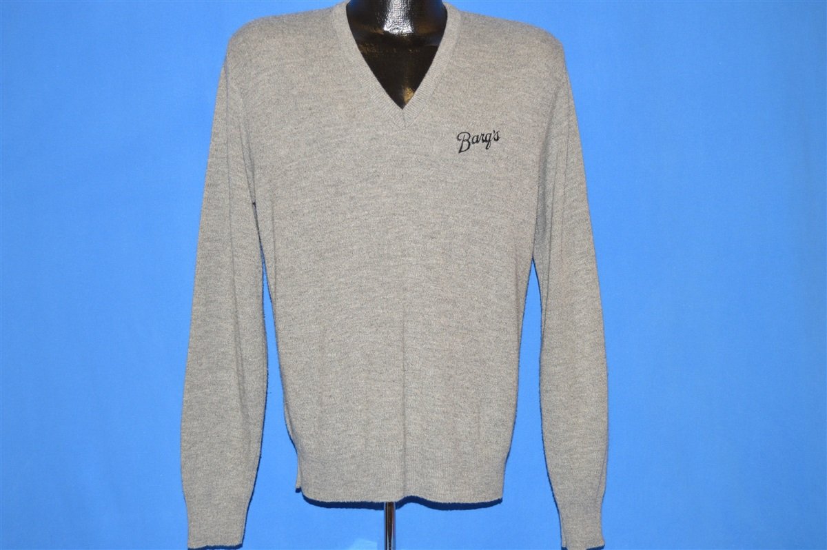 This pullover sweater is from the 80s and features the Barq's Rootbeer name stitched into the front upper left. This sweater has a v-neckline and is in excellent used condition.